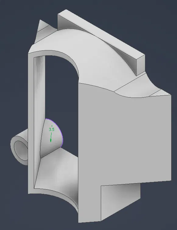 Lắp đặt: Cần tháo cụm extruder ra giống như lúc bạn bảo trì. Chọn shroud theo heatsink lớn nhất bạn sẽ dùng, vì bạn không muốn phải thay shroud hoài—không vui đâu. Conch = 14mm, V2 = 12mm, Stock/V1/kiểu tương tự = 10mm. Nếu không chắc, dùng duct size Conch vì nó sẽ phù hợp với tất cả hotend hiện tại. Có 1 chốt vuông press-fit 2.5x2.5x15mm cắm vào các lỗ phía trước bên dưới, hoặc bạn cũng có thể dùng ốc phù hợp. Lỗ bắt ốc trên quạt và trên model theo file là 3.5mm. Mép trên có một cái tab gài vừa khít vào khe rất tiện giữa quạt và extruder. Khi gắn lại extruder sẽ hơi khó thao tác hơn chút vì chừa ít khoảng trống hơn, nhưng mình chỉ gặp chút xíu trở ngại thôi.