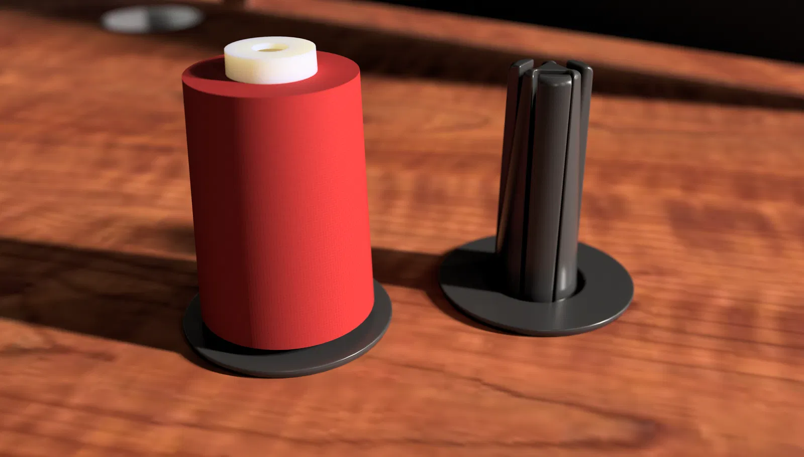 Mình thiết kế món này cho giá treo chỉ côn Prym, vì mình thấy cái trục zin (original pin) của nó không phải là cách tốt để đỡ các ống chỉ côn lớn.