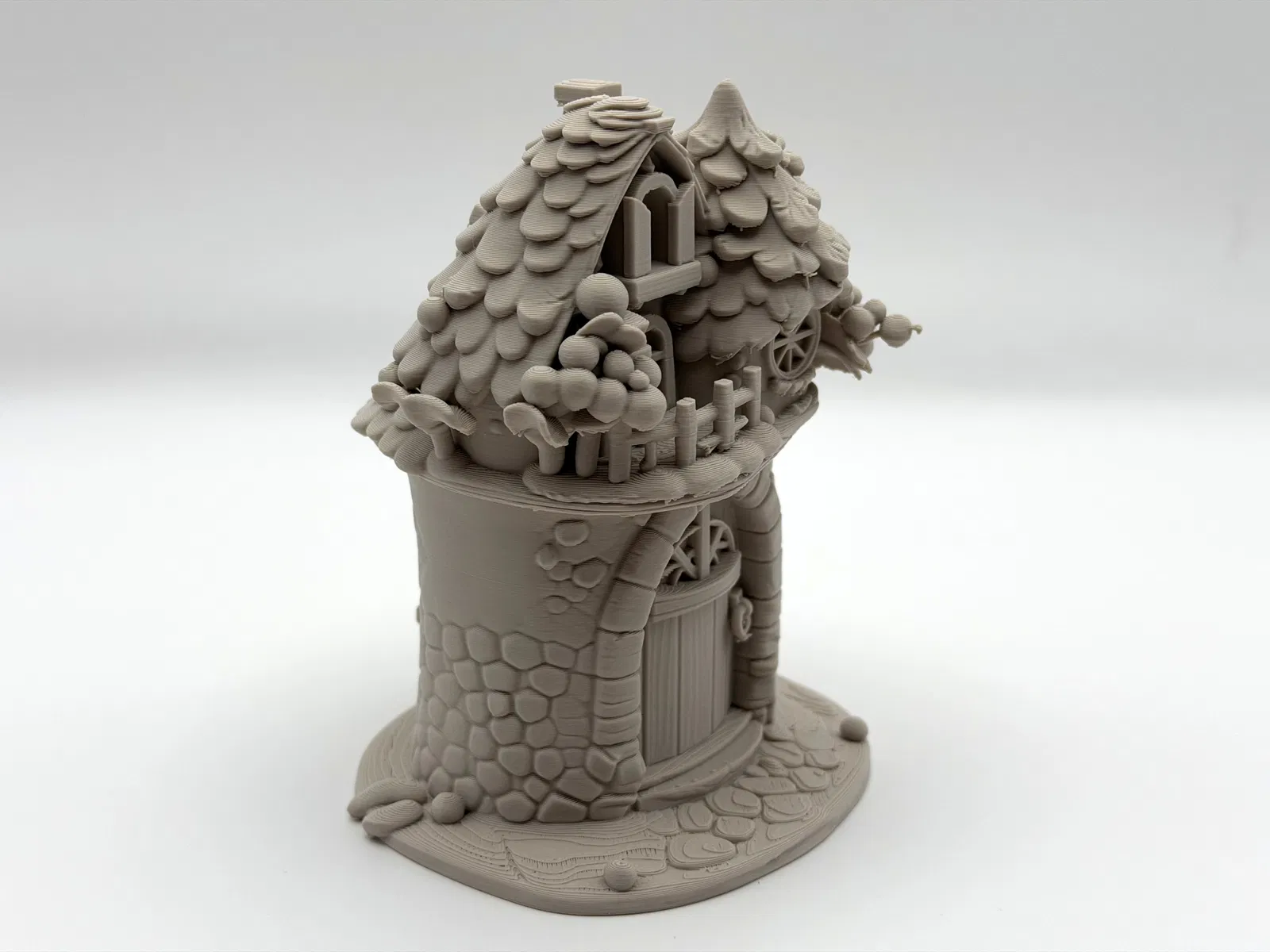 Tanglebark Cottage là mẫu nhà tiên kiểu cổ tích, nhiều chi tiết tinh xảo, hợp làm decor/diorama. Cần supports; dùng organic-style supports và chỉnh Z-top height để tháo support dễ, sạch hơn.