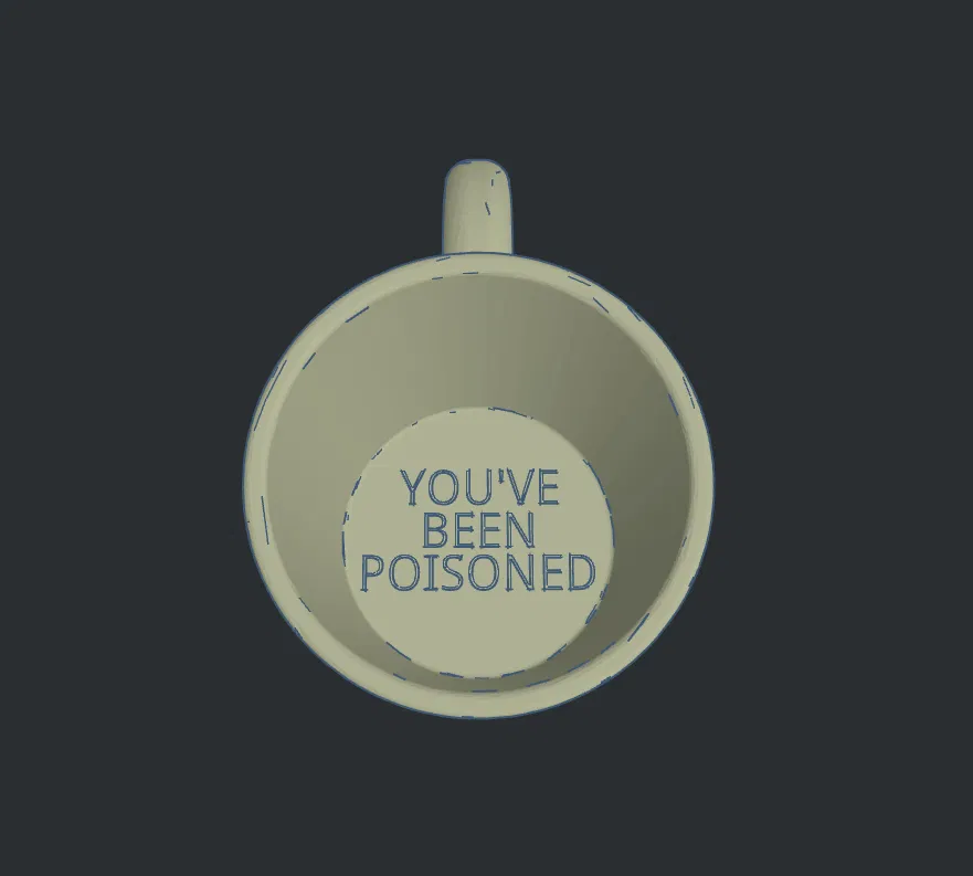 Mẫu ly chơi khăm vui để mời khách ở nhà. Khi uống hết, họ sẽ thấy dòng chữ “bạn đã bị đầu độc”. In phần chữ bằng màu tương phản rồi đổi filament (MMU/AMS hoặc 1 extruder) để lên màu rõ nét.