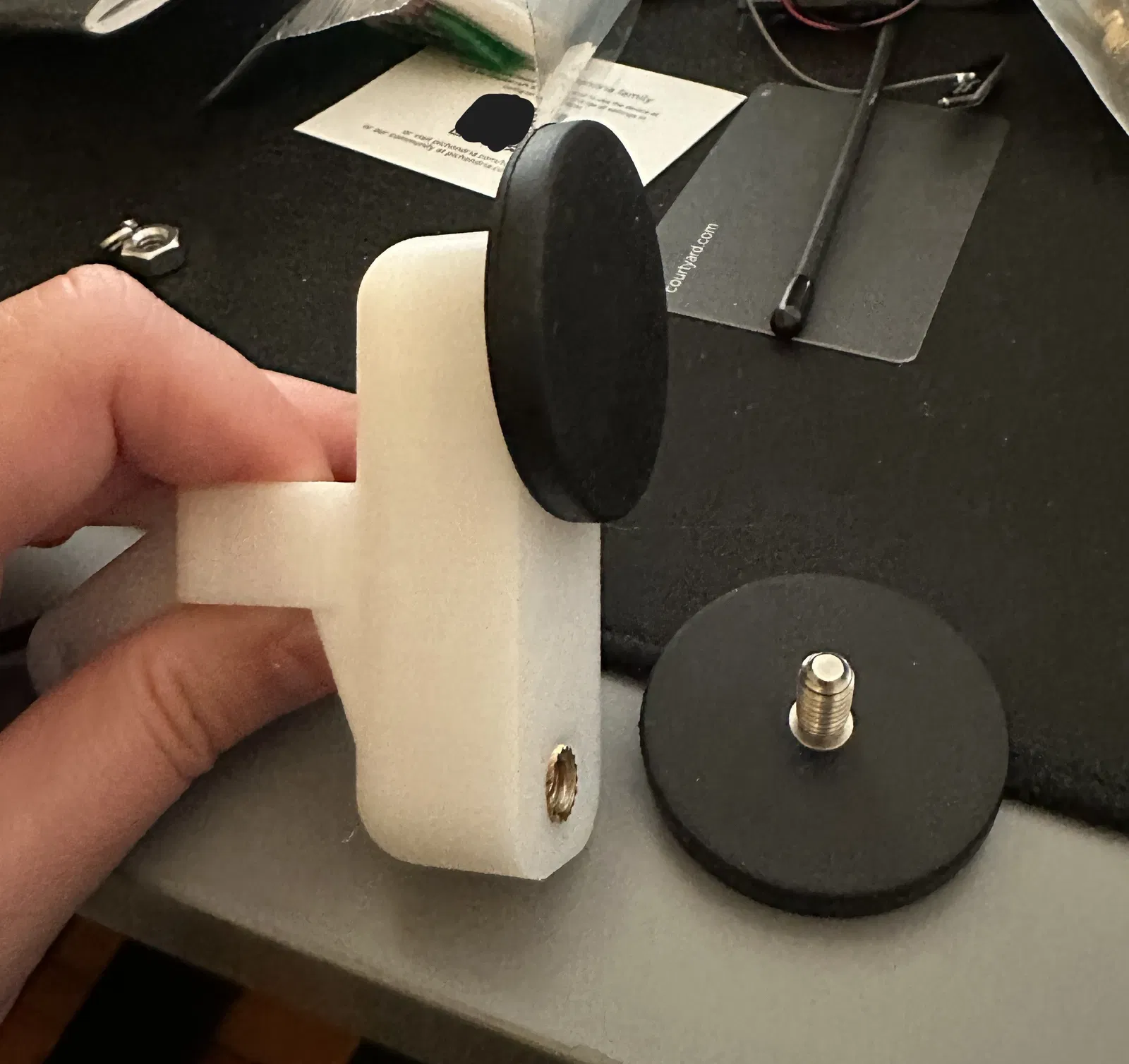 Bạn sẽ cần mua các nam châm vặn ren 1/4"-20 cũng như một ít heat-set inserts 1/4" nếu bạn chưa có (đồ này rất tiện).