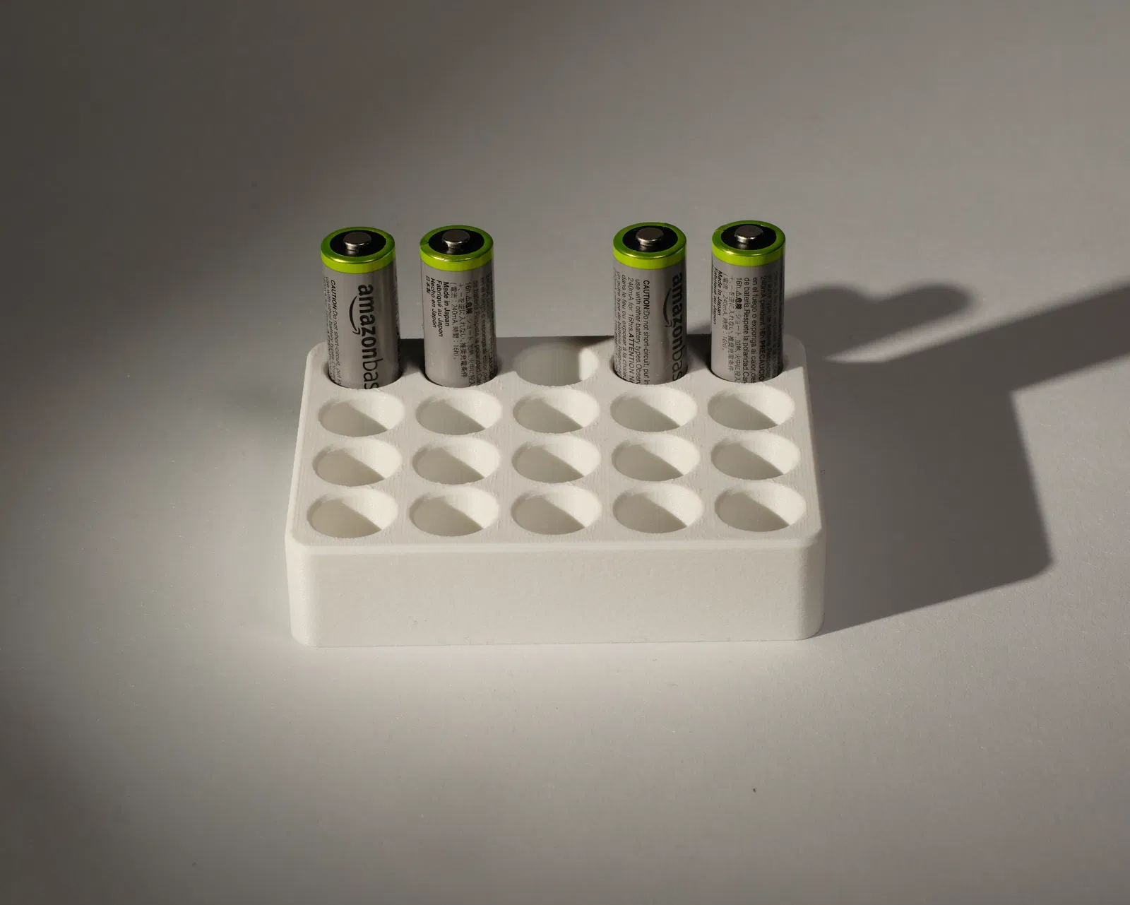 Khay đựng pin AA dạng lưới 4×5, chứa gọn 20 viên pin AA. Thiết kế tách ô rõ ràng giúp dễ quan sát và lấy nhanh. Phù hợp bàn làm việc, ngăn kéo, xưởng hoặc khu vực lưu đồ điện tử; dễ in 3D và bền.