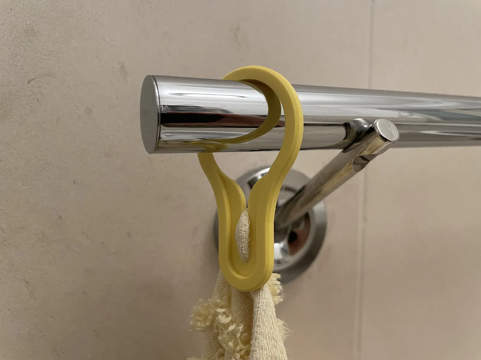 Mẫu móc treo khăn in nhanh, giúp treo khăn dễ hơn và đỡ bực mình vì vòng treo khăn hay đứt hoặc quá nhỏ. Phù hợp cả khăn bếp lẫn khăn tắm, kích thước đủ lớn để dùng với nhiều loại móc treo.