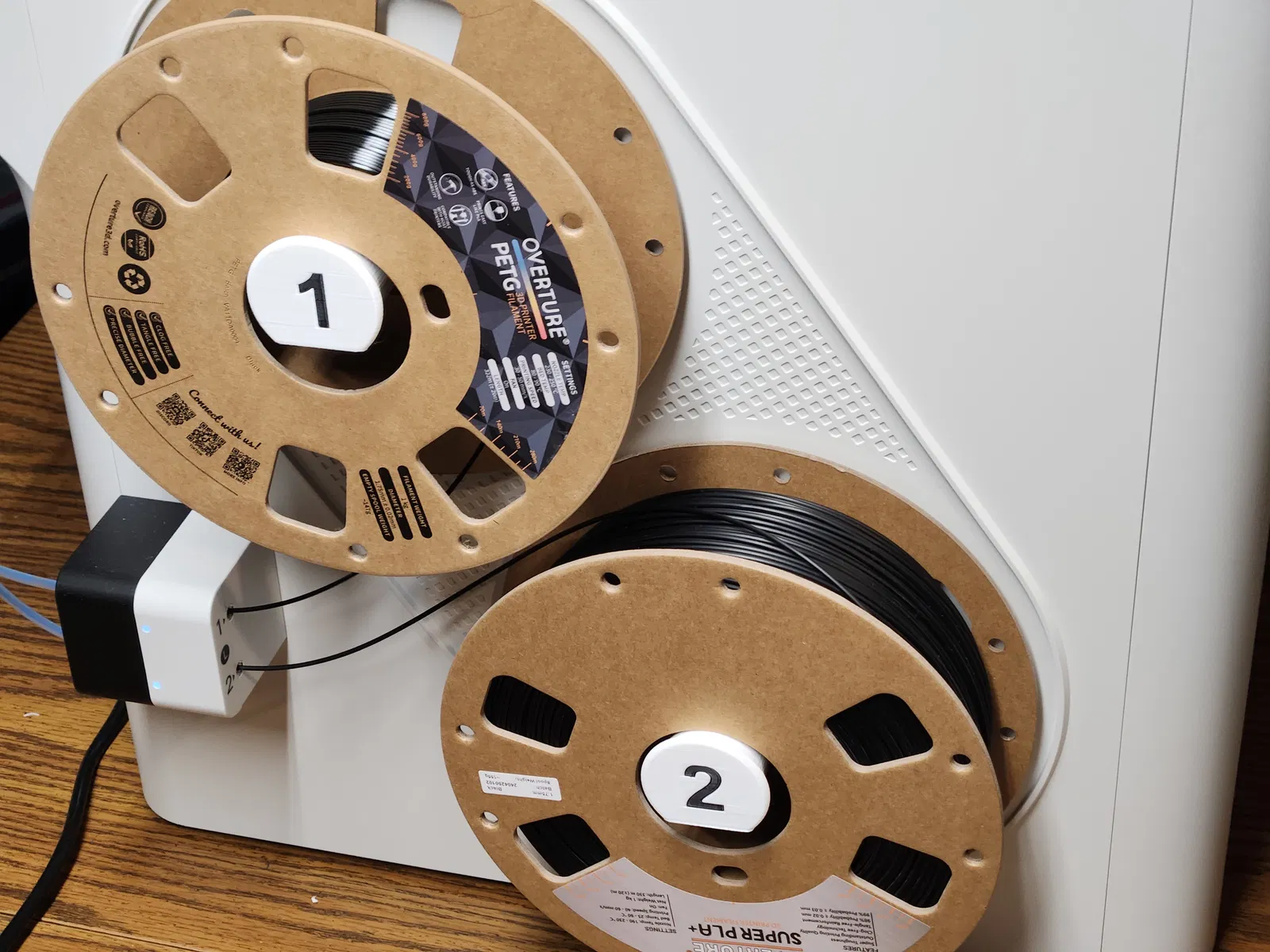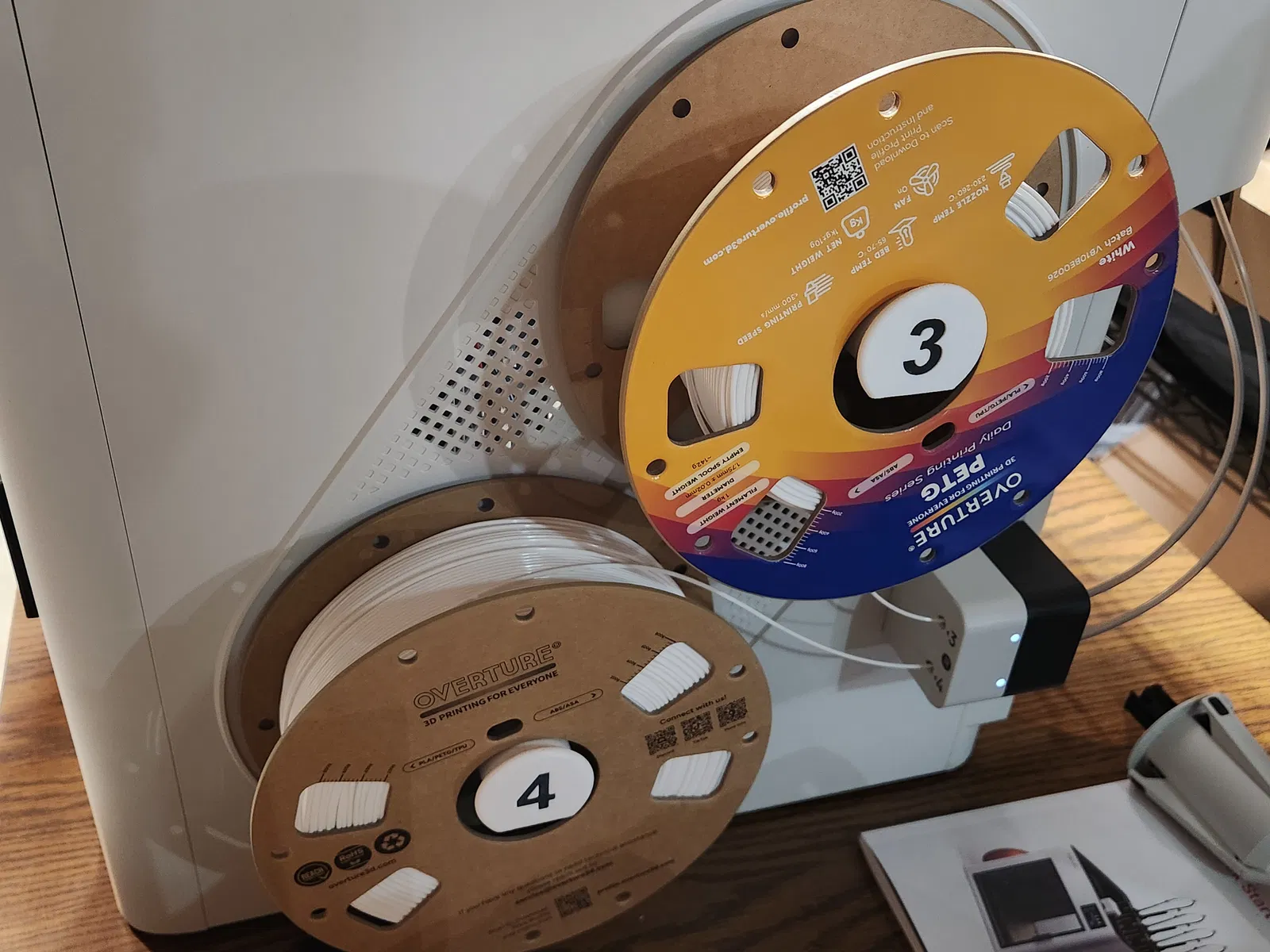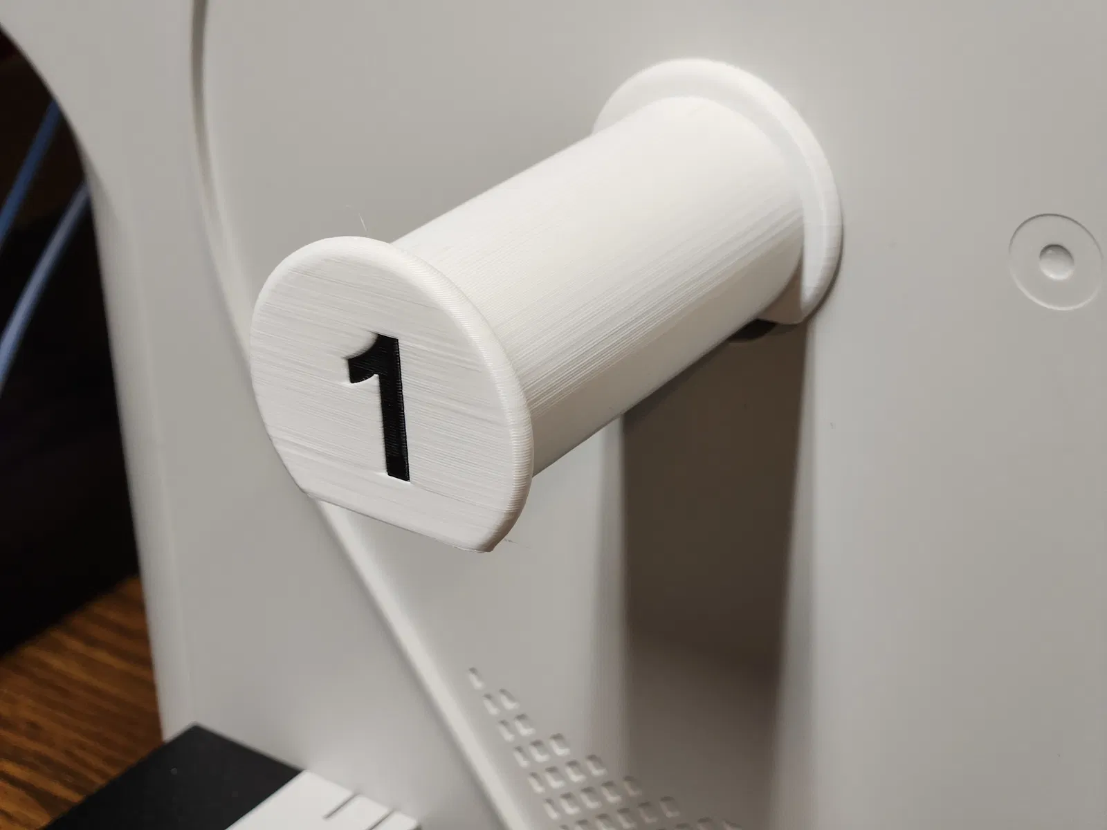 Mấy cái spool holder zin theo máy hơi khó chịu khi tháo ra gắn vào nhiều cuộn filament. Mình nghĩ họ thiết kế vậy để cuộn có RFID nằm sát đầu đọc, nhưng nếu bạn giống mình, chưa dùng nhiều filament của Snapmaker, thì nó chỉ tổ mệt thôi.