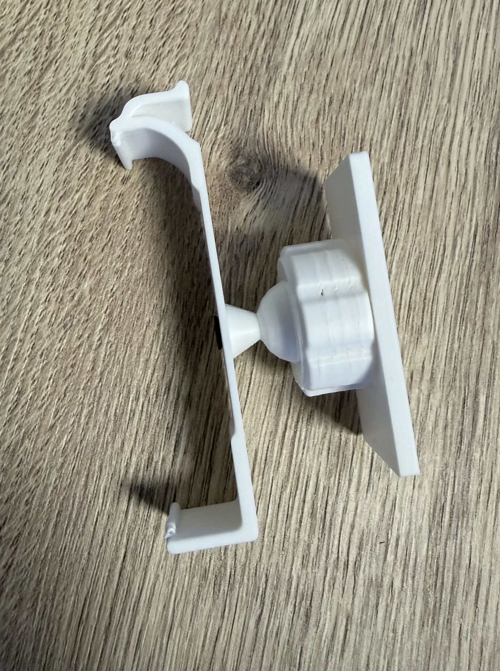Giá treo tường linh hoạt cho cảm biến chuyển động IKEA MYGGSPRAY. Đã bỏ ball joint của mẫu gốc và thay bằng lỗ bắt vít đầu chìm dùng vít M3, giúp dễ gắn sang phụ kiện khác hoặc khớp bi tự làm.