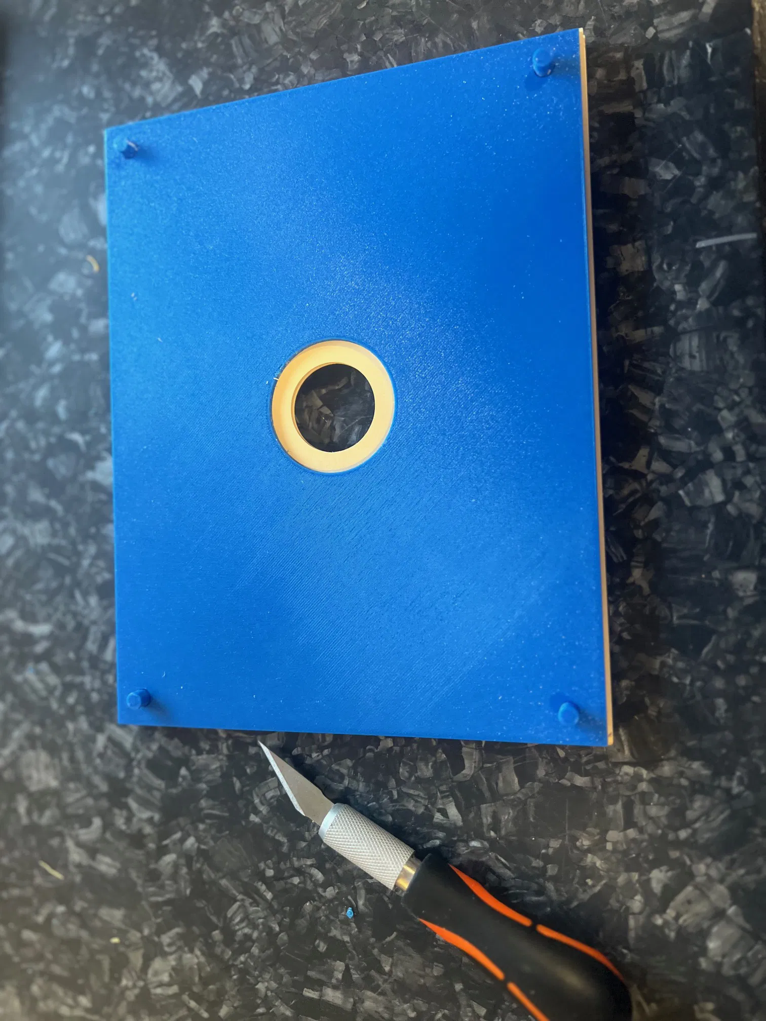 Khung cắt giúp tạo lỗ 45mm trên bia giấy Sius (blank hoặc rifle) khi bắn ở cự ly 7.5m. Kèm mặt trước 10m 60mm để tự làm bia từ giấy dày, và file Fusion để chỉnh kích thước lỗ khác.
