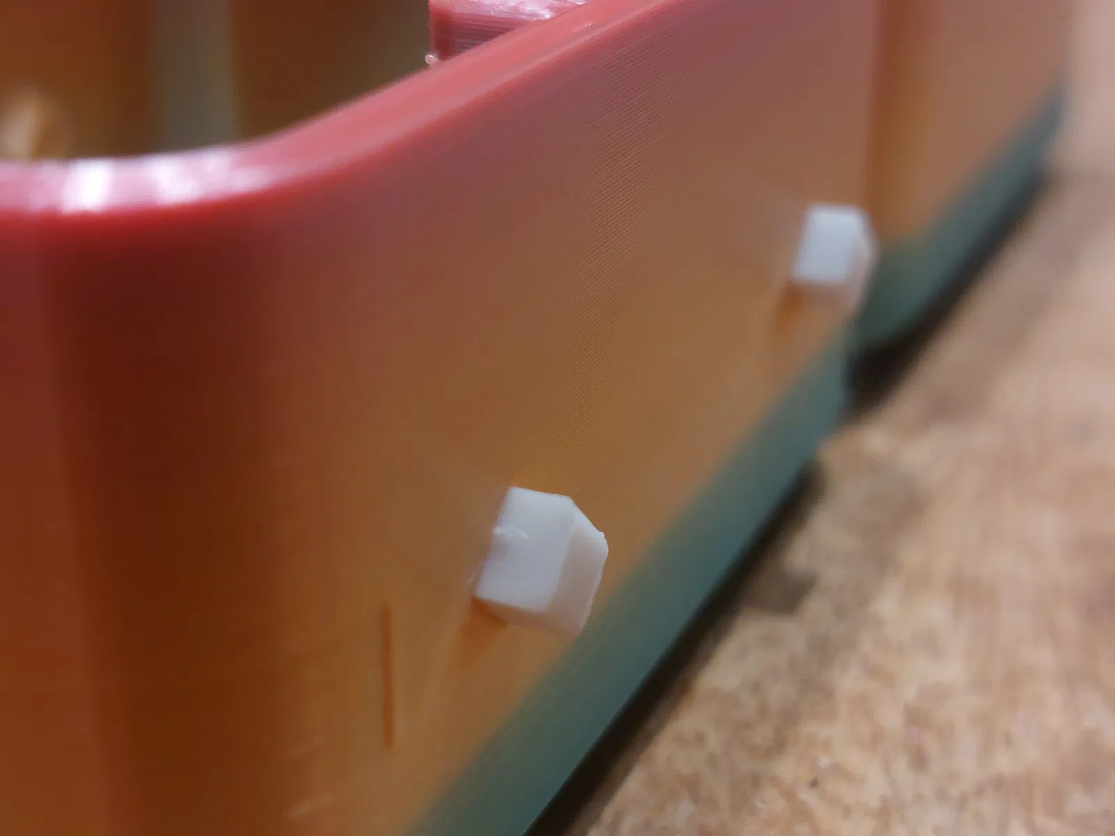In 2 chốt (pins) cho mỗi cặp hộp, rồi ấn mạnh vào các rãnh bên hông