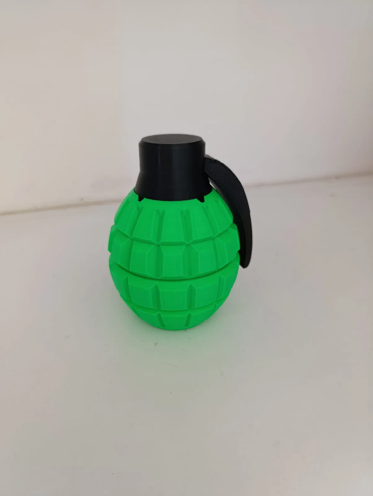 Hộp đựng lấy cảm hứng từ lựu đạn: nhìn “bùng nổ” nhưng chỉ để lưu trữ/để bàn. In không cần supports, chạy ngon với PLA, 12% grid infill (test Ender-3 V3 SE). Gợi ý in phần khóa bằng PETG cho bền.