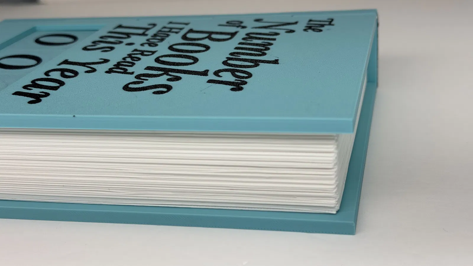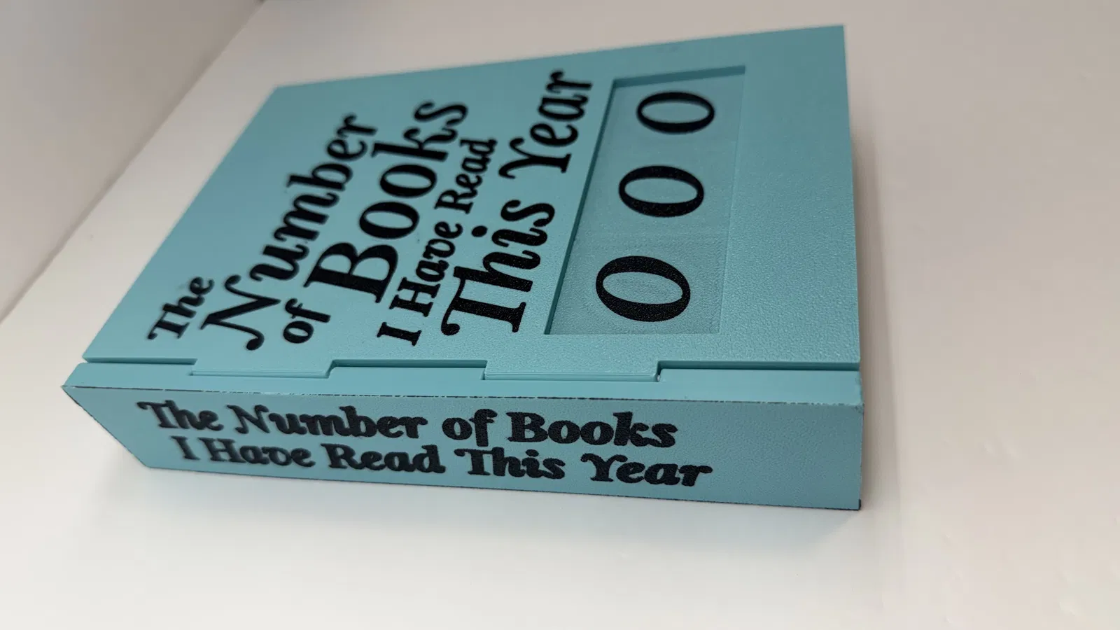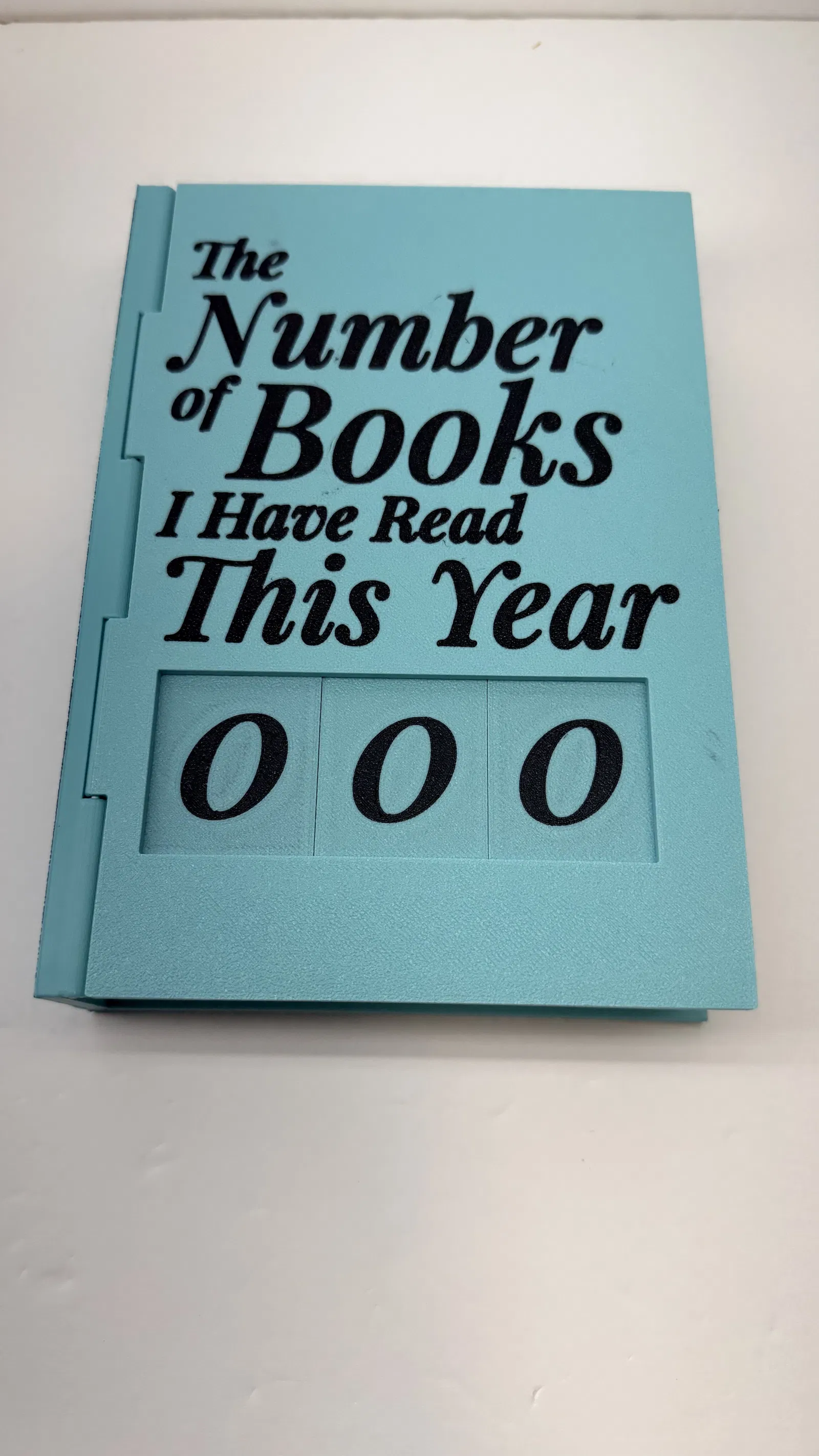 Sổ theo dõi mục tiêu đọc dạng cơ khí modular (0–999). In úp mặt trên textured PEI cho bề mặt đẹp, không cần support. Dùng 4 nam châm 9x3mm và bản lề bằng sợi filament 1.75mm; hợp PLA/PETG.