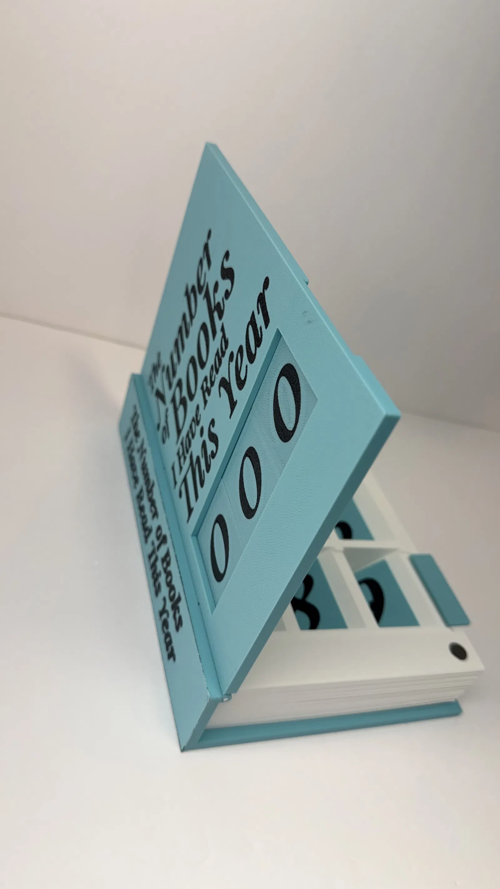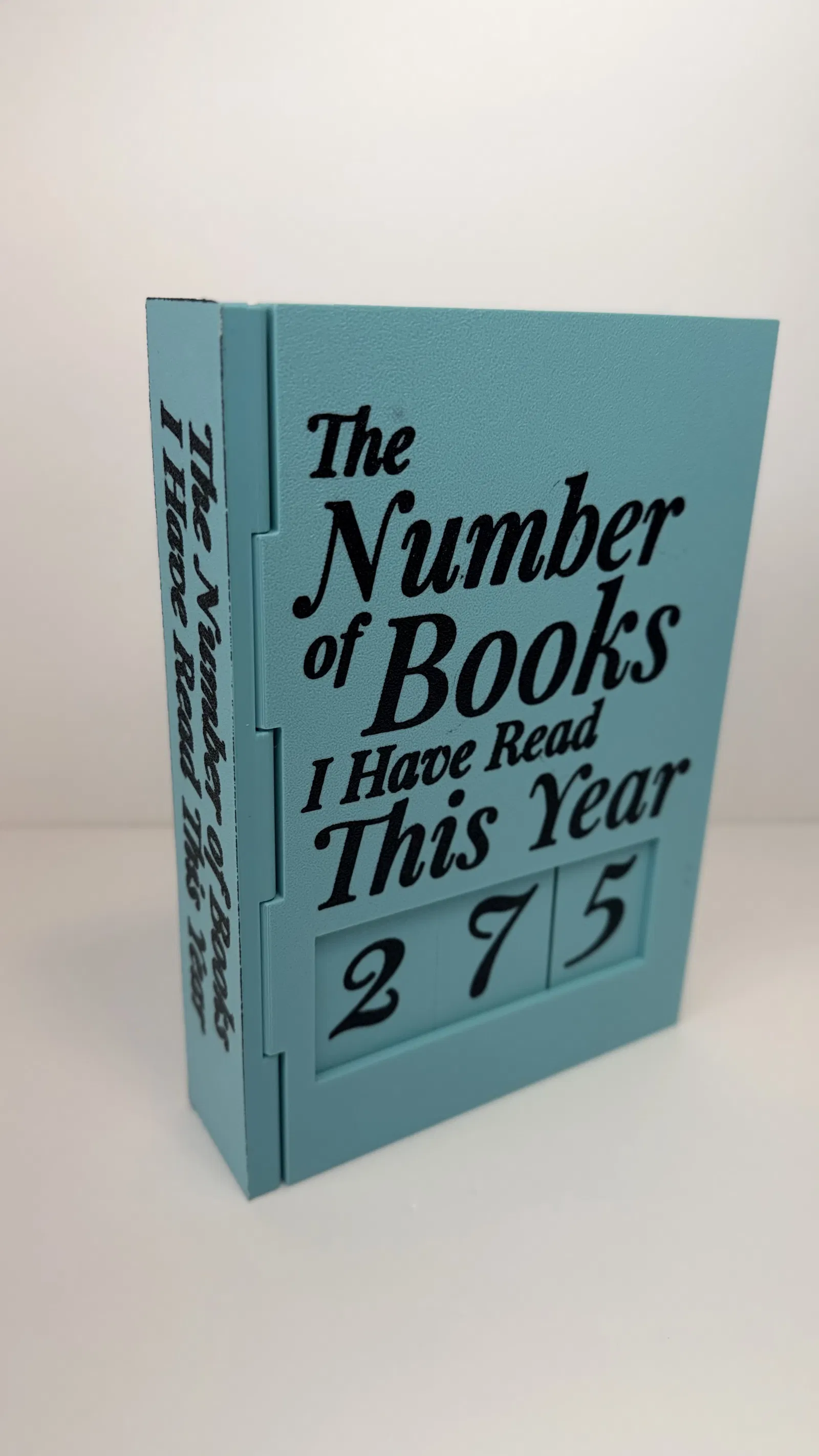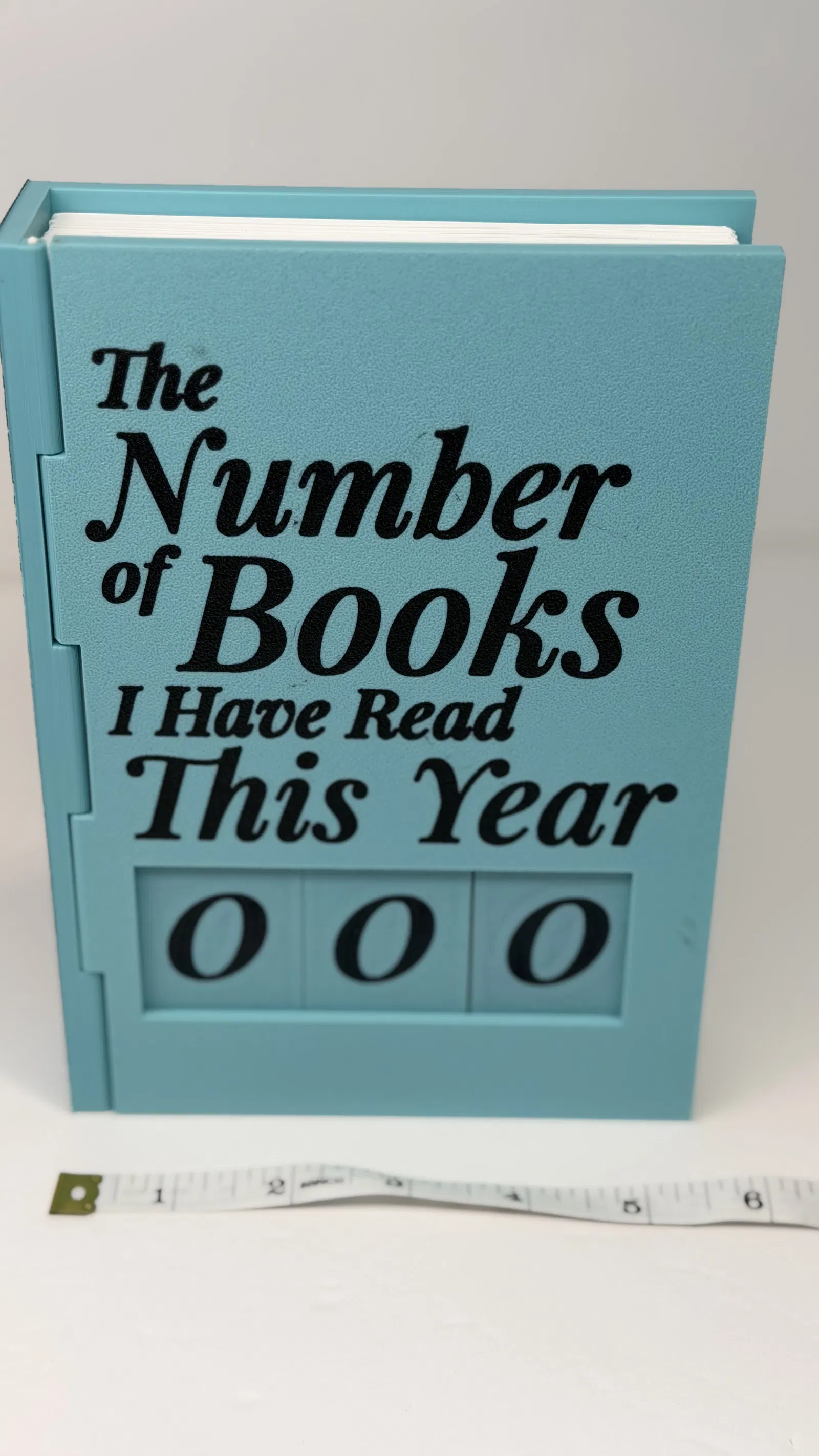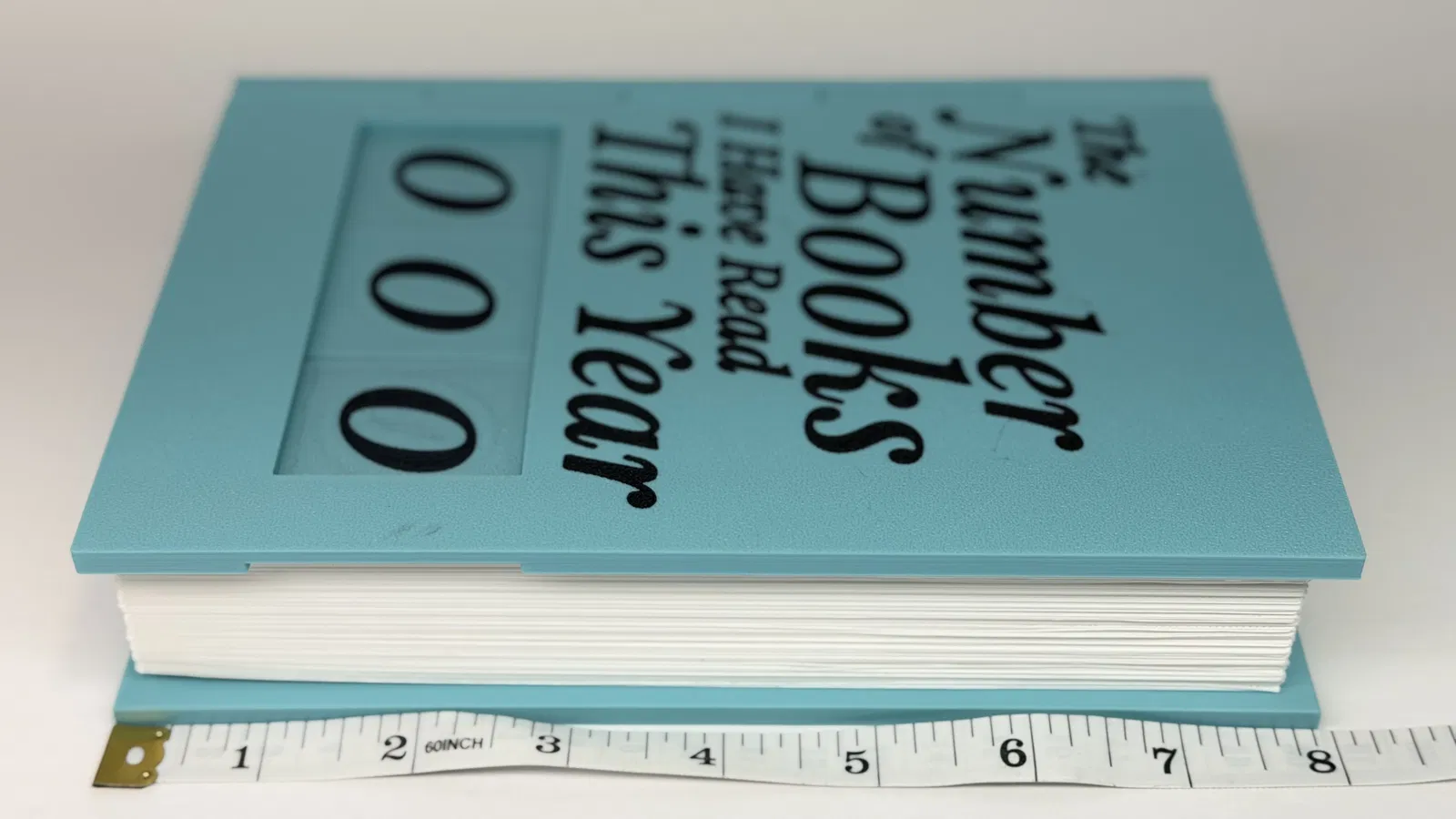 Sổ theo dõi mục tiêu đọc dạng cơ khí modular (0–999). In úp mặt trên textured PEI cho bề mặt đẹp, không cần support. Dùng 4 nam châm 9x3mm và bản lề bằng sợi filament 1.75mm; hợp PLA/PETG.