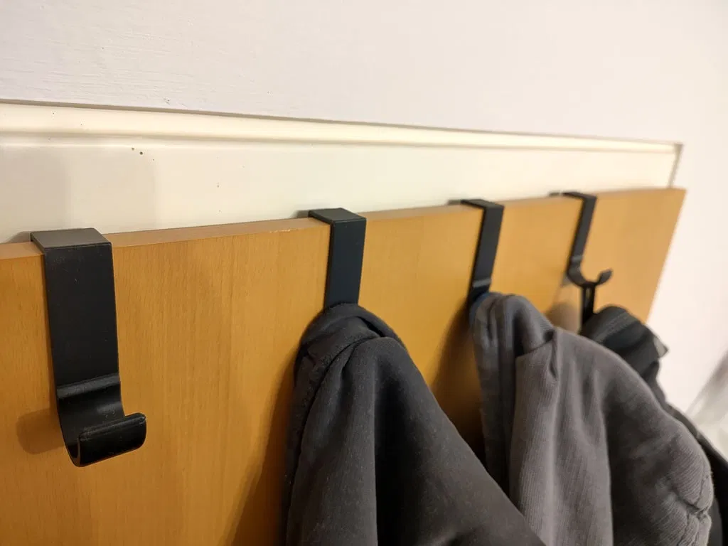 Mẫu Door Hook đơn giản để treo đồ sau cửa. Khuyến nghị in theo hướng nằm nghiêng để tăng độ bền. PLA đủ cho balo và áo khoác; nếu treo nặng thì nên dùng filament bền hơn.