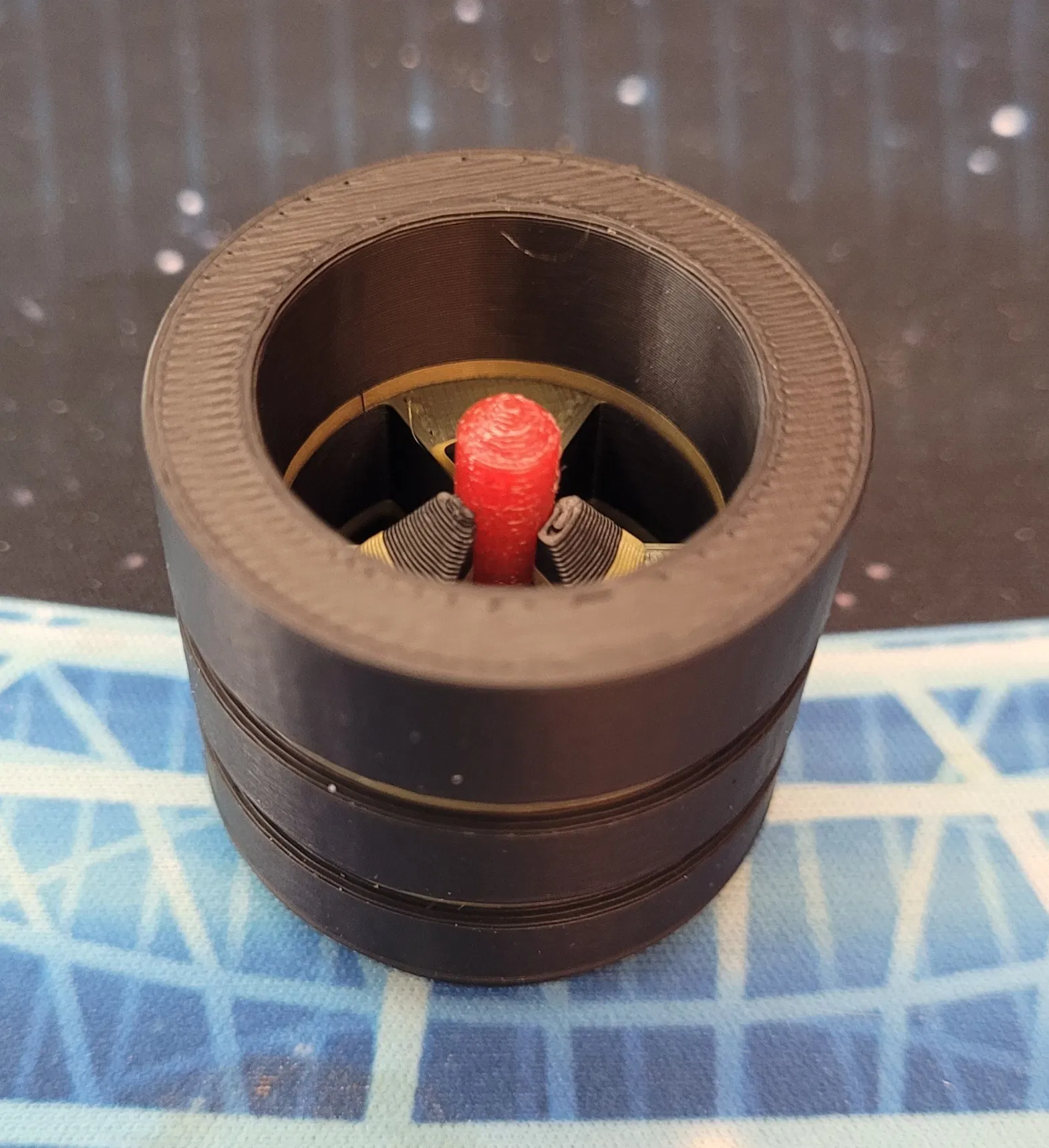 Sau khi in xong, nhớ kiểm tra suction cup đã ngồi chắc chưa và khi ở trạng thái nghỉ thì pin không được đẩy nó quá nhiều. Nếu nó đẩy suction cup bật ra, nghĩa là pin quá dài. Mình thấy xoay suction cup trong holder giúp pin “settle” xuống và tìm đúng lỗ dễ hơn.