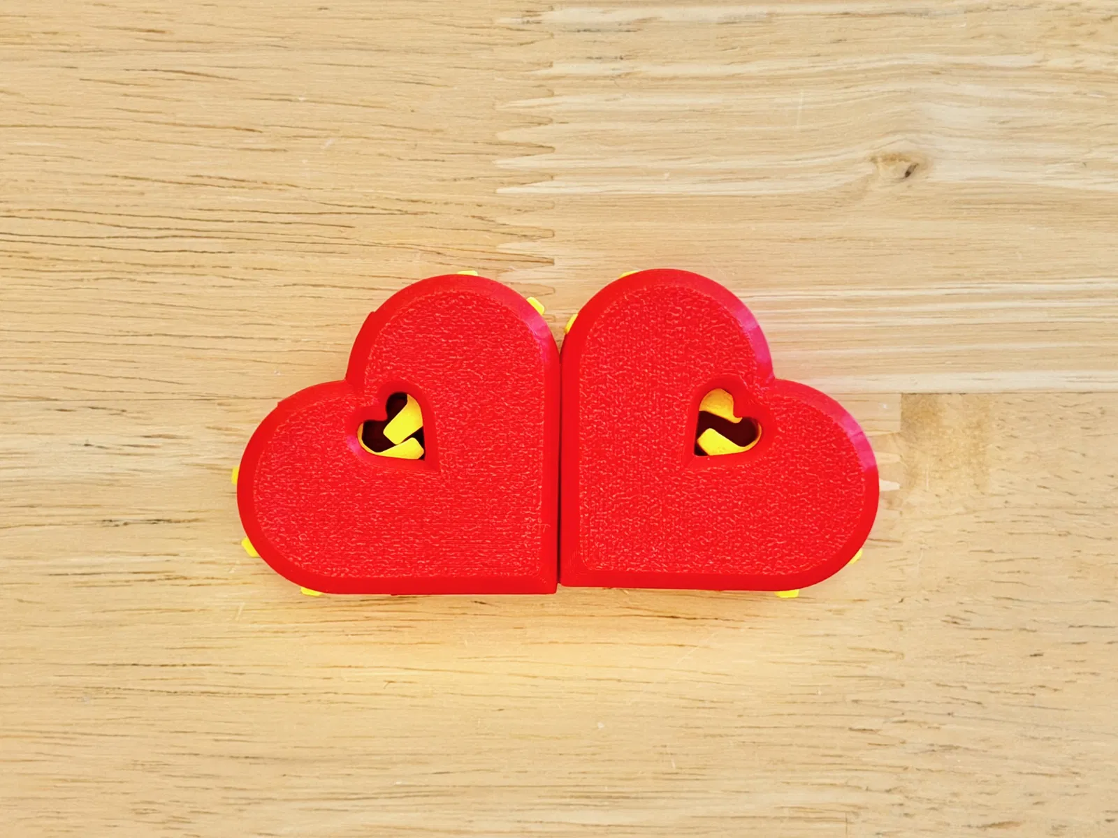 Mẫu fidget hình trái tim chủ đề Valentine, lắp ráp kiểu snap-together với 2 bánh răng quay vui tay. In xong ráp lại liền, không cần keo hay phần cứng (hardware) nào.