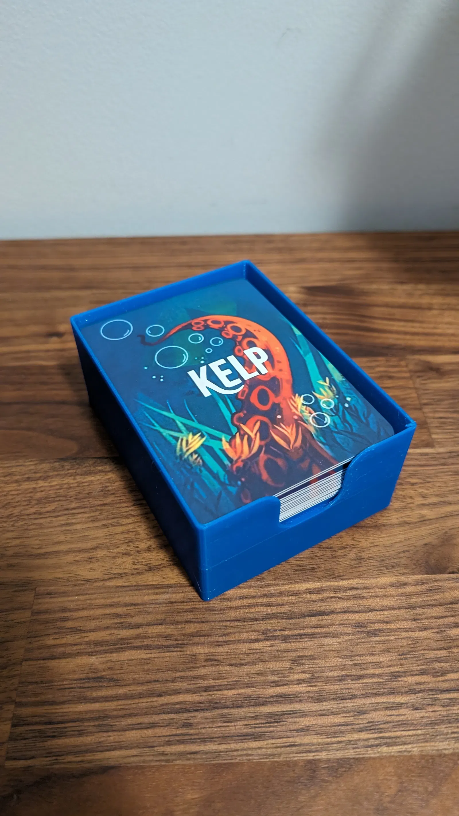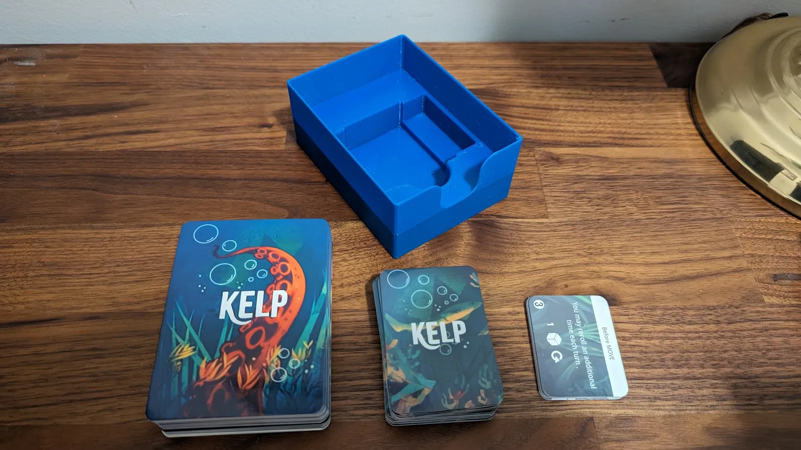 Khay đựng bài kiêm box insert cho board game Kelp (dựa trên mẫu pre-production). Thiết kế vừa toàn bộ bài của bản standard edition. In bằng PETG trên Ender 3V2, không cần supports.
