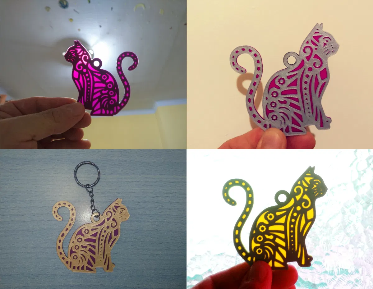 Móc khóa hình con mèo (llavero de gato) dạng trong mờ, nhìn dễ thương và tiện để gắn vào chùm chìa khóa hằng ngày. Phù hợp để in 3D làm phụ kiện cho chìa khóa hoặc làm quà tặng nhỏ.