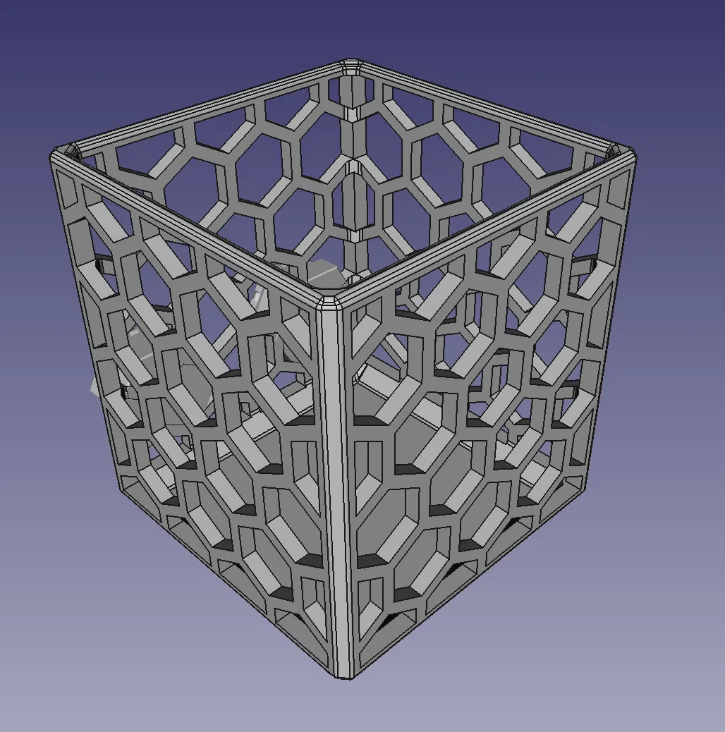 Mẫu này dùng để giữ chai isopropyl alcohol loại phổ biến bạn hay mua ở mấy cửa hàng như Walmart và gắn lên Honeycomb Storage Wall (HSW). Mình in bằng Ender 3 v2 và dùng Cura để slice. Với kiểu container dạng honeycomb/hex, mình thấy in ổn nhất khi bật support trees cho các góc vượt quá 80°.