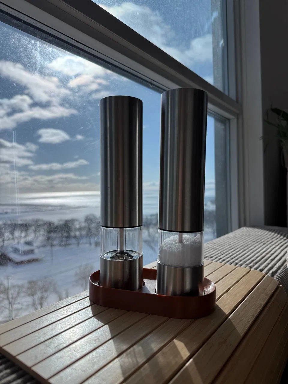 Khay đựng hũ xay muối và tiêu này được thiết kế để giữ mặt bàn bếp luôn sạch sẽ bằng cách hứng phần muối/tiêu còn sót lại — thứ hay rơi ra từ grinder sau khi dùng.