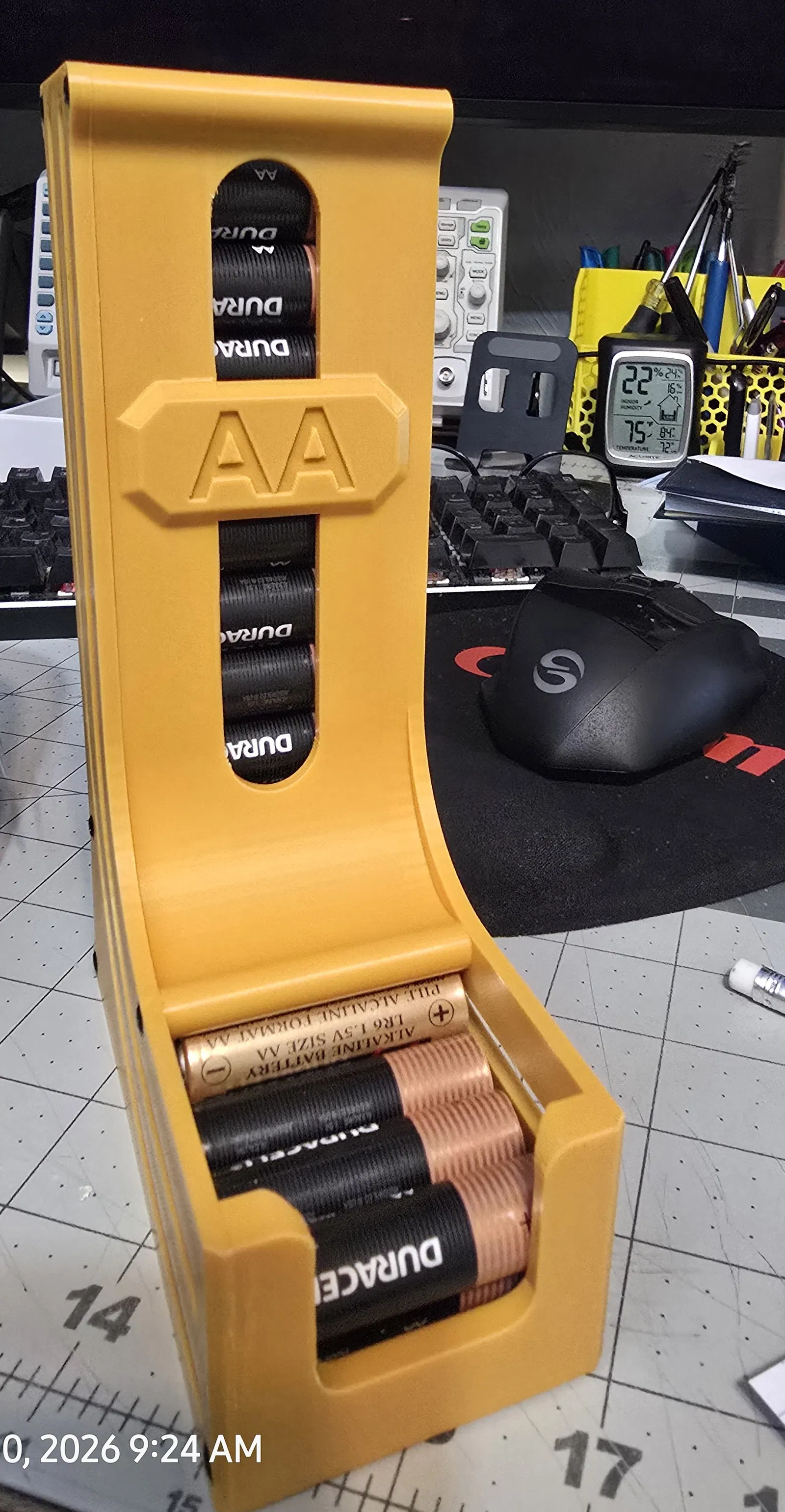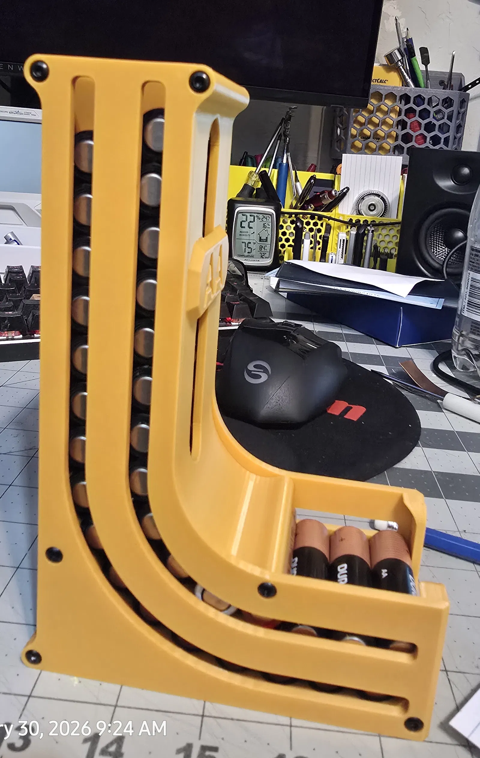 Phiên bản cải tiến của khay nhả pin AA và AAA, thiết kế đã thử nghiệm nhiều lần để fit chuẩn và chứa pin nhiều. Có file Bambu Lab để canh hướng in, cần supports và ốc M3 khi lắp. Dùng để bàn hoặc gắn tường.