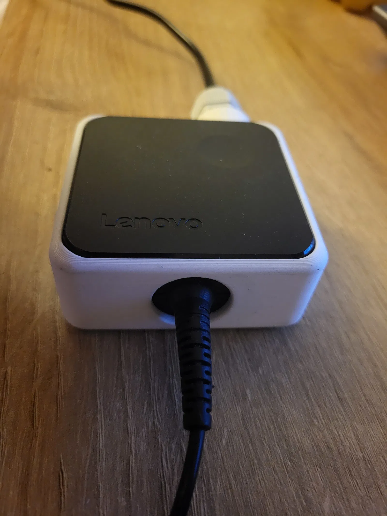 Mẫu dùng để sửa cục sạc laptop Lenovo: che/bọc lại phần vỏ sạc bị nứt, đồng thời bổ sung dây nguồn cấp vào để cục sạc chắc chắn hơn sau khi sửa.