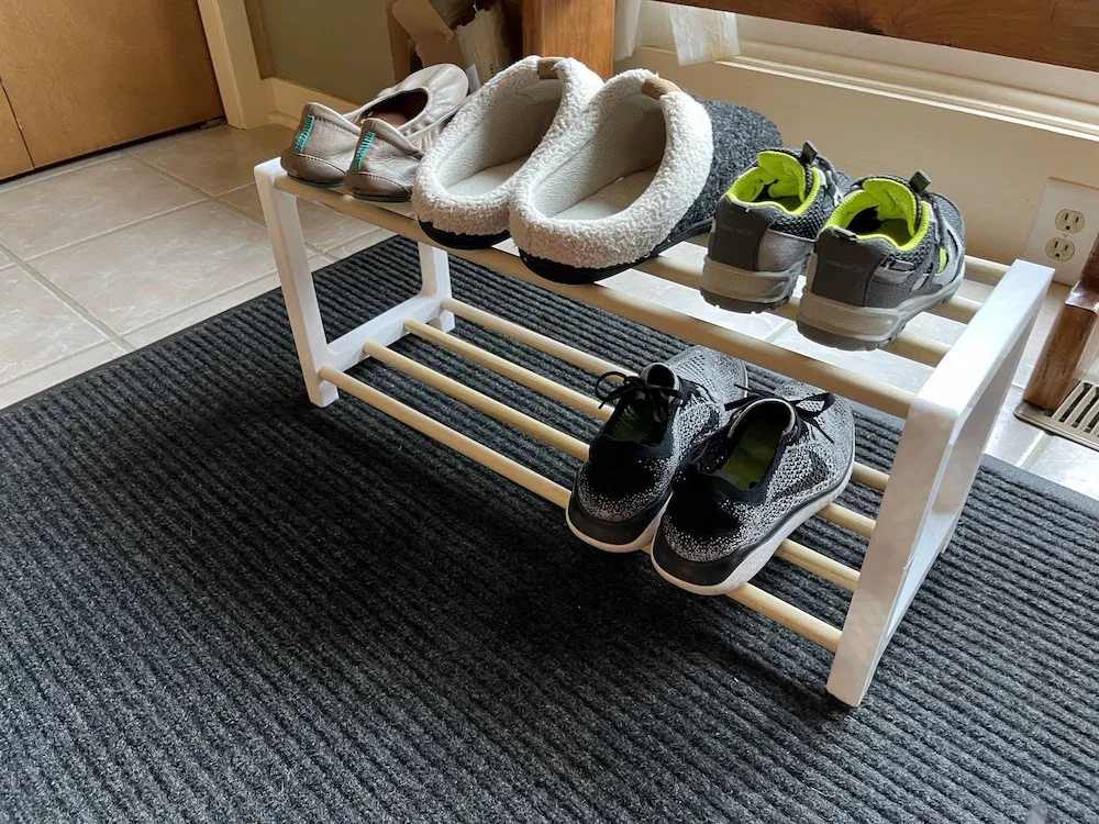 Giống như bản gốc, đó là một giá giày mô -đun, có thể xếp chồng lên nhau mà bạn có thể tùy chỉnh theo bất kỳ sự kết hợp nào mà bạn thích. Tôi đã đính kèm hình ảnh của một vài cách khác nhau mà tôi đã xây dựng cho đến nay. Các lỗ ngang lớn hơn một chút, mà tôi thấy thực sự hữu ích trong việc lấy các chốt để trượt vào mà không có vồ.