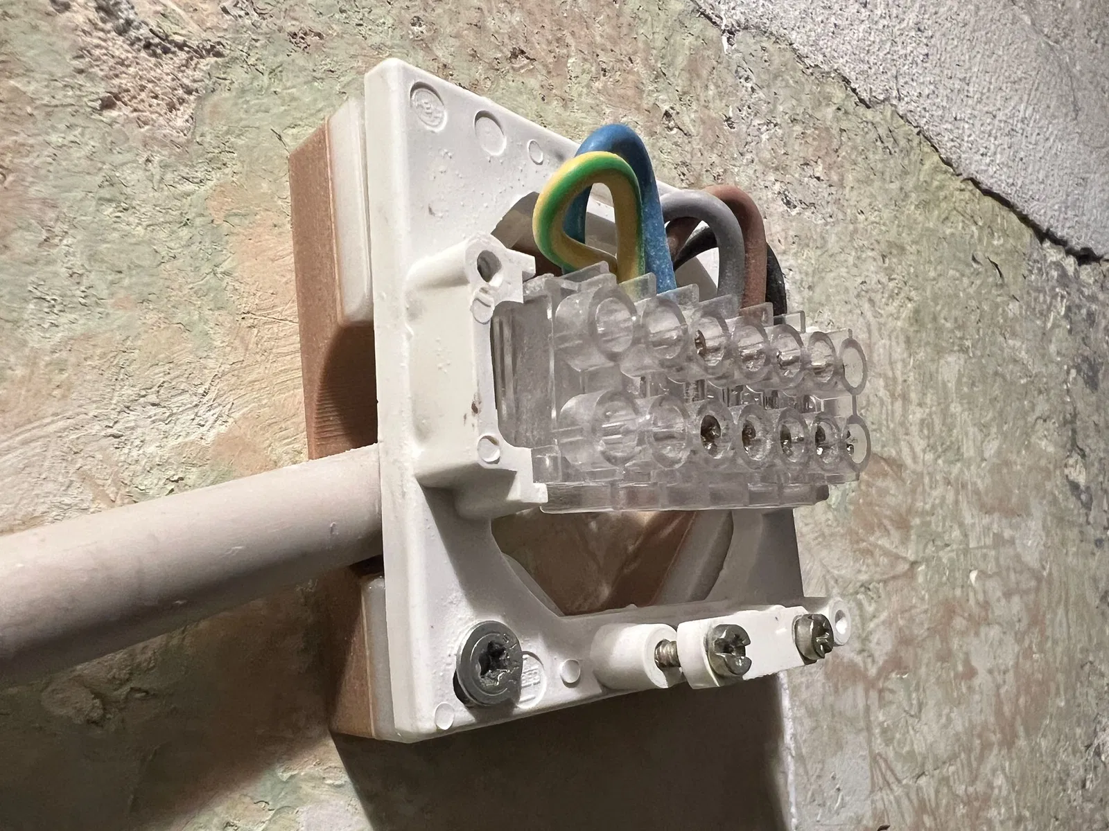 Một spacer plate để luồn dây cáp điện áp cao 5 lõi (5-pole) của bếp trong nhà bếp vào hốc tường. Nhờ vậy khỏi cần đục tường để đưa dây cáp chui xuống dưới khung của hộp (box).