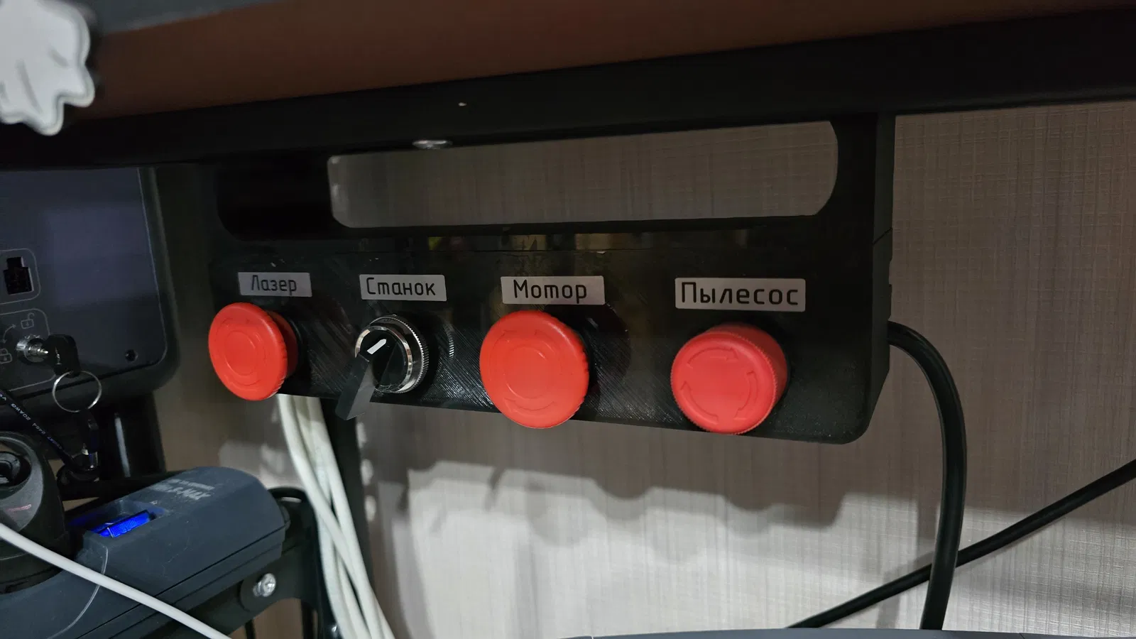 Bảng điều khiển nút dừng khẩn (Emergency Stop Control Panel) có tích hợp cầu chì, thiết kế để lắp ráp bằng bạc ren M3, vít M3 và nam châm 10x3 mm, phù hợp cho các dự án DIY và tủ điều khiển.