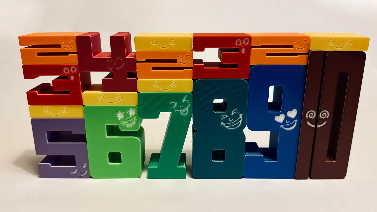 Bộ này rất phù hợp để dạy về các con số và mối quan hệ của chúng. Những con số nhiều màu dùng như các khối lắp ghép, trẻ có thể xây tháp, nhà nhỏ và các hình khác. Qua hình thức chơi, trẻ làm quen với số, giá trị và nguyên tắc cơ bản của cộng và trừ (ví dụ: 1 + 3 = 4).