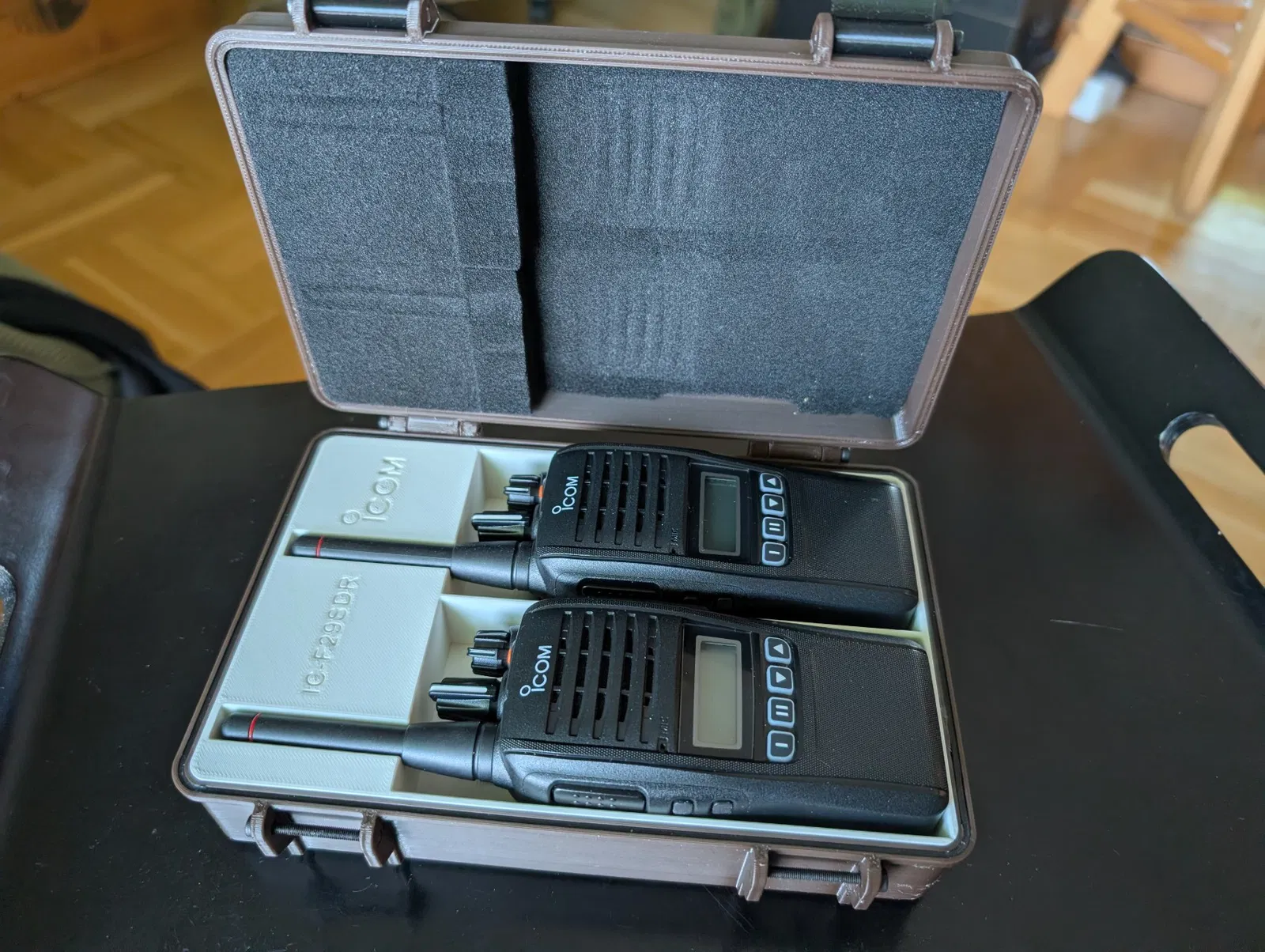 Hộp đựng cho 2 bộ đàm Icom F29SDR. Bạn sẽ cần 6 vít M3x30 để lắp ráp.