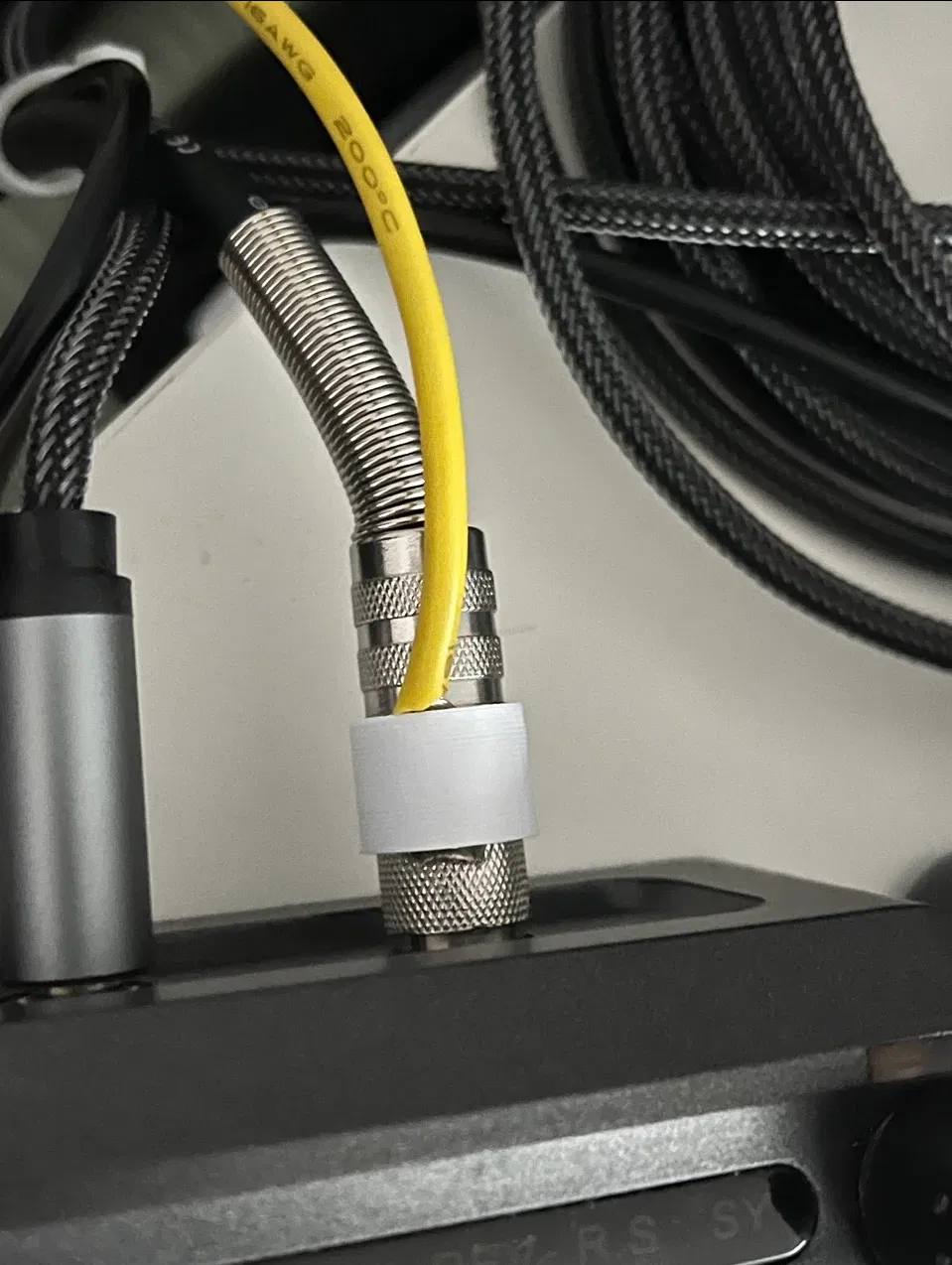 2. The Clamp: In cái ống trụ rỗng. Tròng nó lên jack nhạc cụ 1/4" (cái đang cắm vào interface/processor) để ép đầu dây còn lại tì vào phần kim loại sleeve.