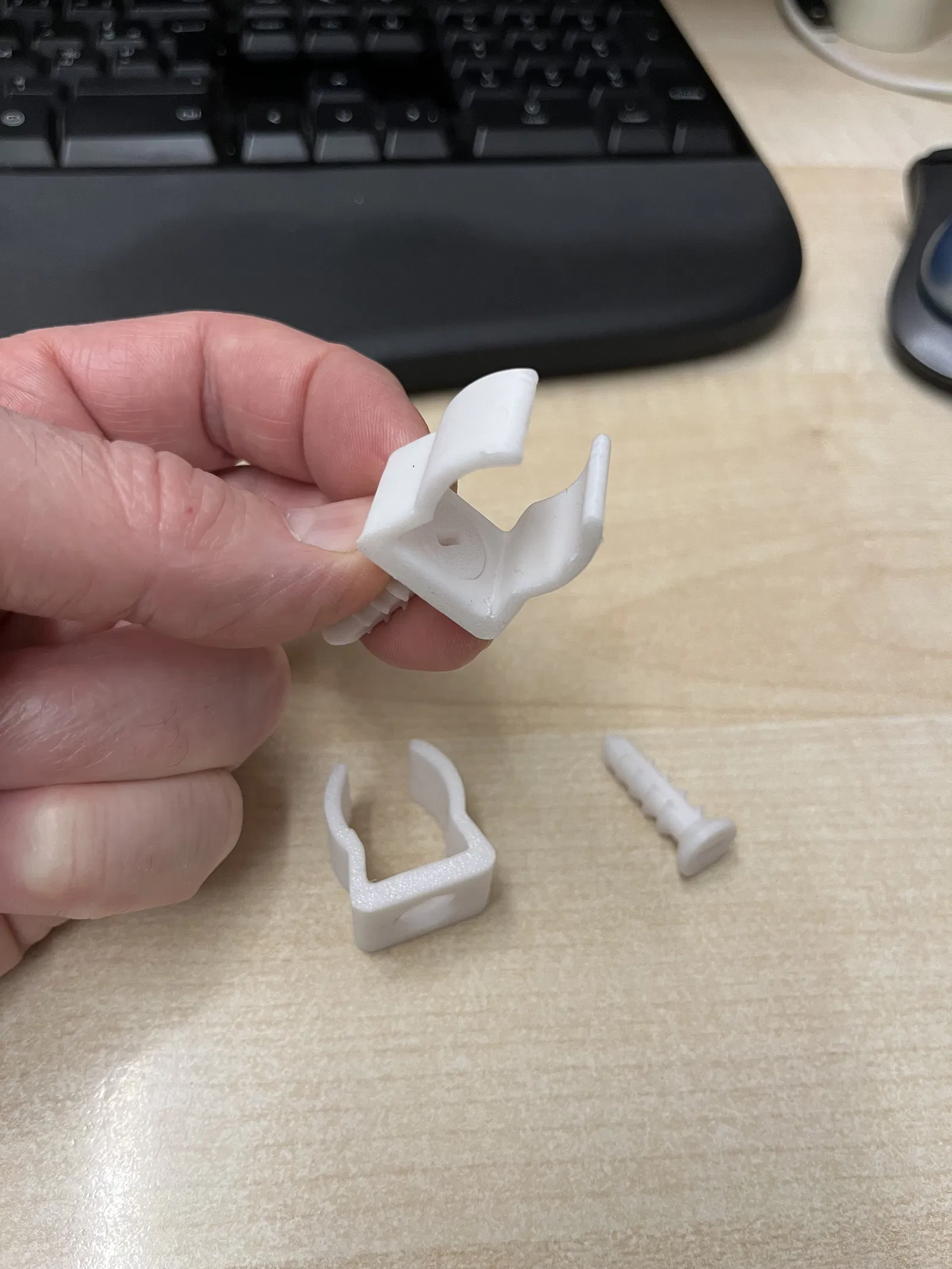 Sau đó mình nghĩ: liệu có thể làm việc lắp đặt gọn hơn bằng cách tạo một clip được cố định trực tiếp bằng chính cái tắc kê, không cần thêm vít nào nữa không? Đây là thứ mình đề xuất ở đây.