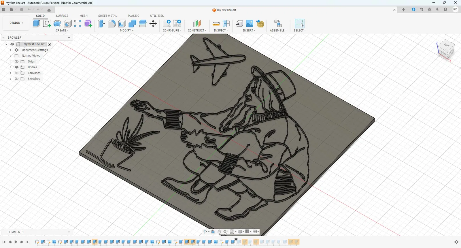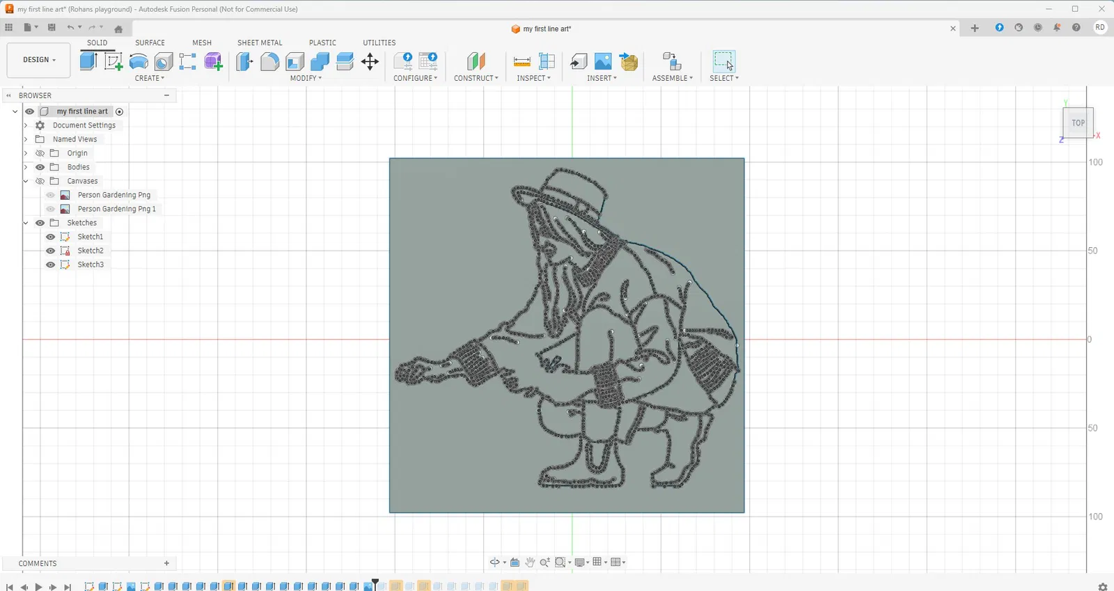 Mẫu line art “Lady gardening” – cô gái làm vườn cầm hoa trên tay. Gợi ý in: infill 10%, dùng Gyroid, không cần supports. Lưu ý đừng scale sang inches và in nhiều phần chung một lần.