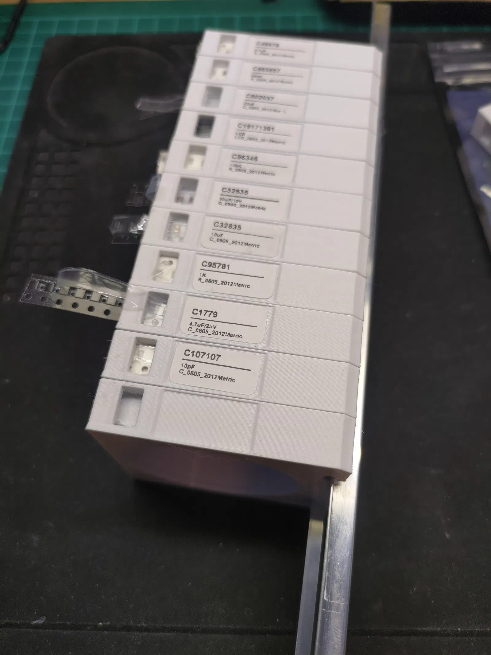Bộ nhả linh kiện SMD cỡ vừa, có thể kẹp lên DIN rail để sắp xếp gọn gàng hơn. Khuyến nghị in PETG để đủ dẻo khi kẹp/tháo, in không cần supports và dùng 20% infill.