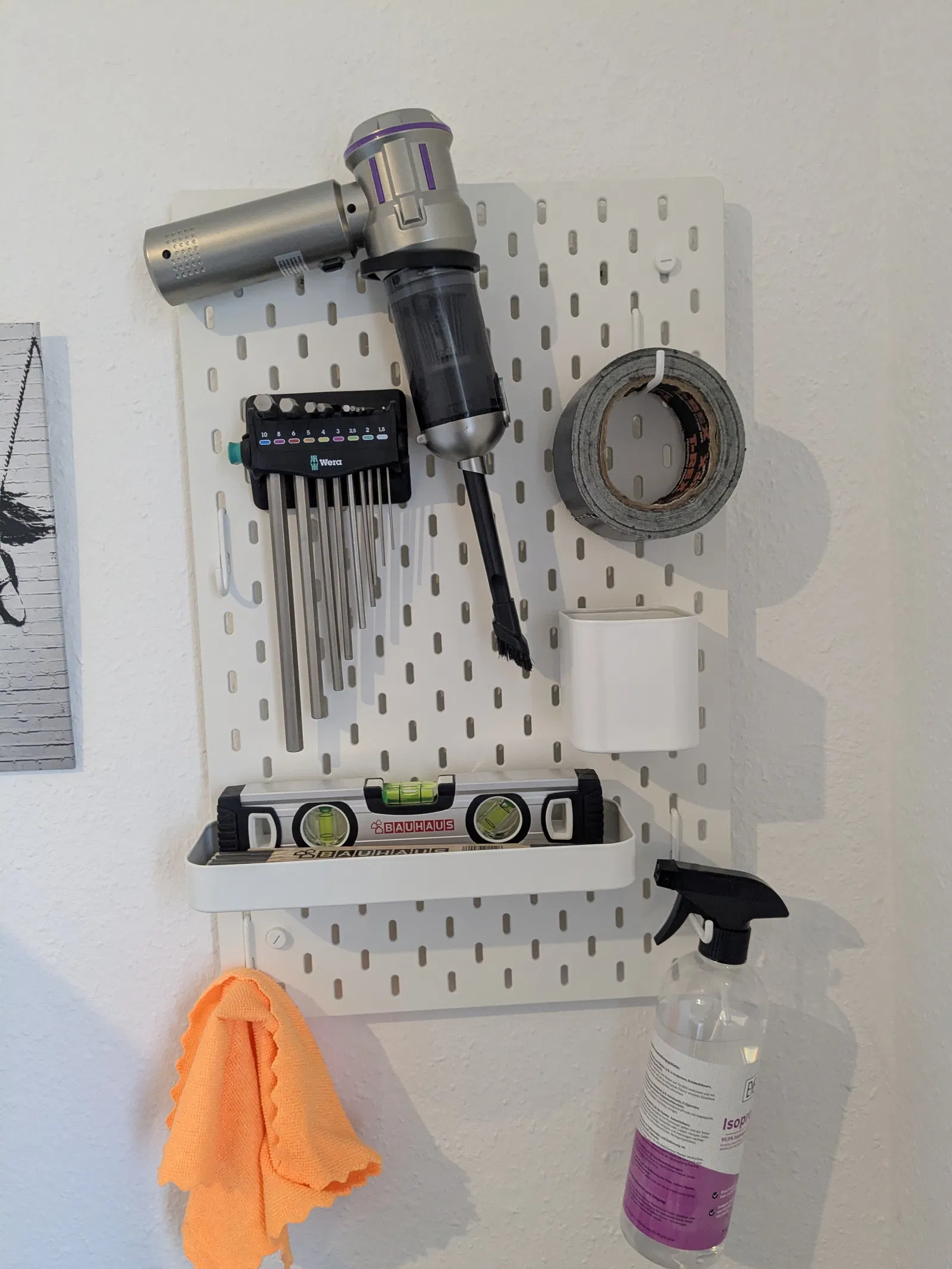Ngàm treo máy hút bụi cho bảng IKEA Skadis, thiết kế bất đối xứng, phù hợp đường kính 64,5–67 mm. Giúp gắn/treo máy hút bụi gọn gàng, chắc chắn trên hệ Skadis.
