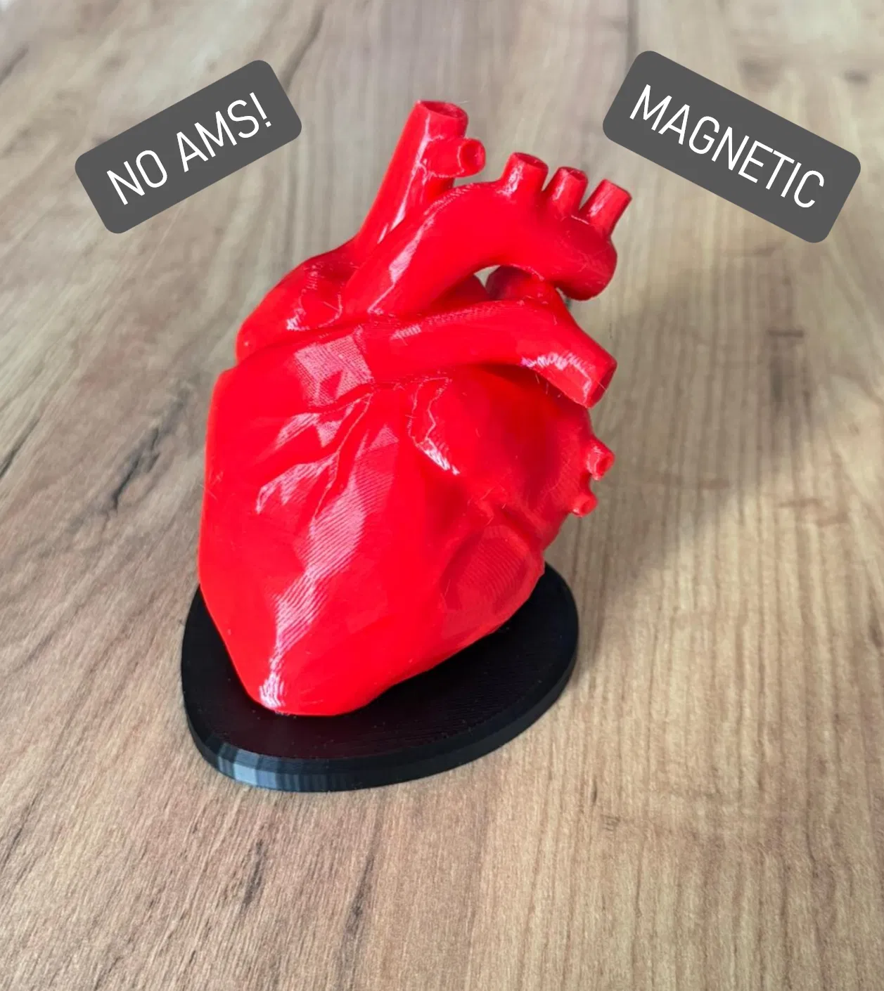 Mô hình tim người đúng giải phẫu gồm 2 phần, có nam châm gắn trực tiếp khi in để ráp khít, không cần keo. Phù hợp học tập hoặc decor, làm quà Valentine/ kỷ niệm. Không cần AMS.