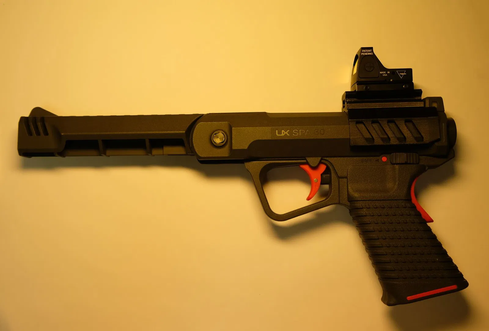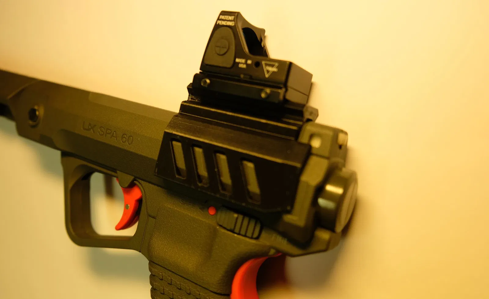 Picatinny optics rail prototype cho airgun Umarex UX SPA60/SPA100 (4.5mm). Kẹp trực tiếp, không che Iron Sights. Lưu ý: nếu không dán keo cố định thì khó giữ “Zero”. Không affiliated với Umarex.