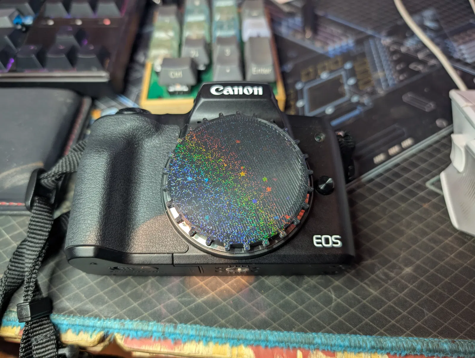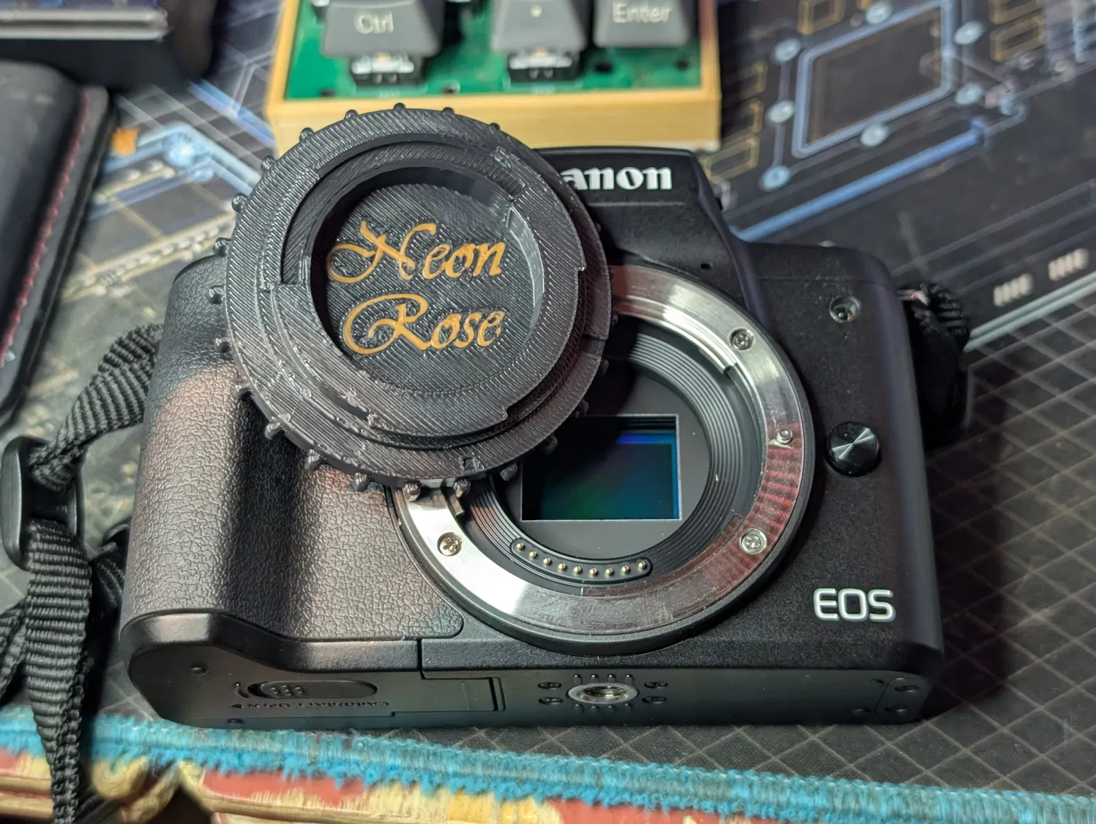 Mình làm một nắp thân máy (body cap) cho các máy ảnh dòng EF-M. Hình minh hoạ chụp trên chiếc M50ii của mình.