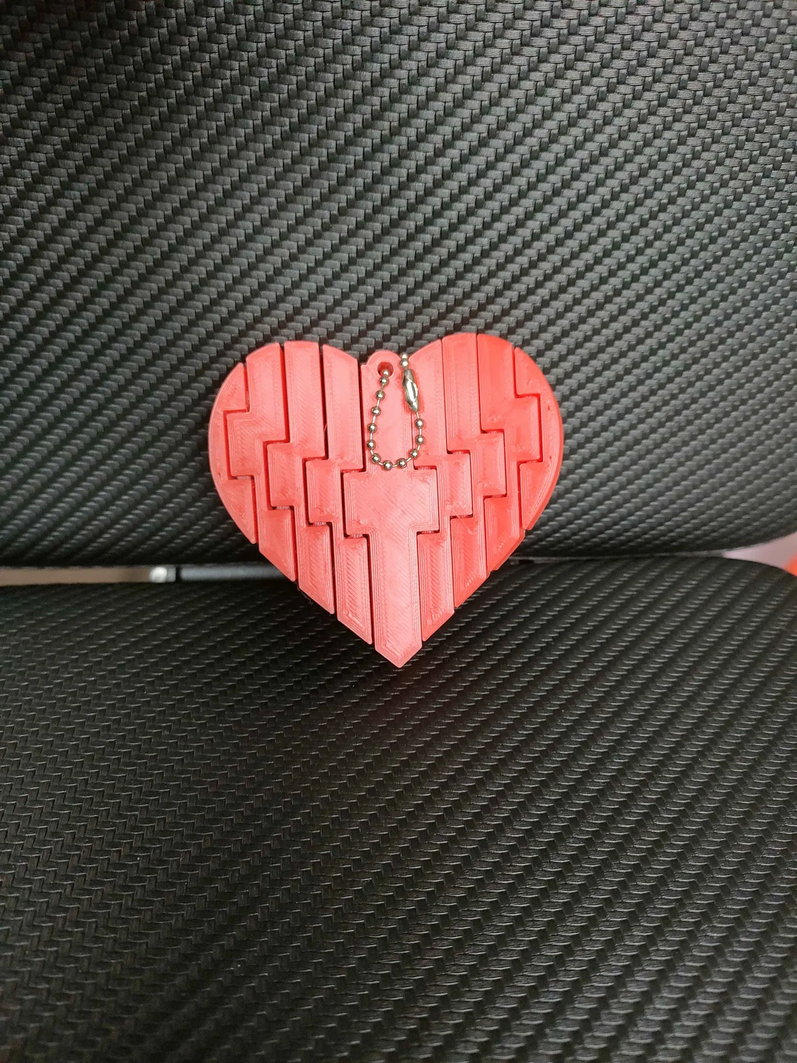 Móc khóa hình trái tim với cấu trúc wiggle bên trong cho phép nhúc nhích nhẹ khi cầm hoặc ấn. In nguyên khối một mảnh, chắc chắn, bền, hợp làm móc khóa đôi và quà tặng Valentine có chuyển động.