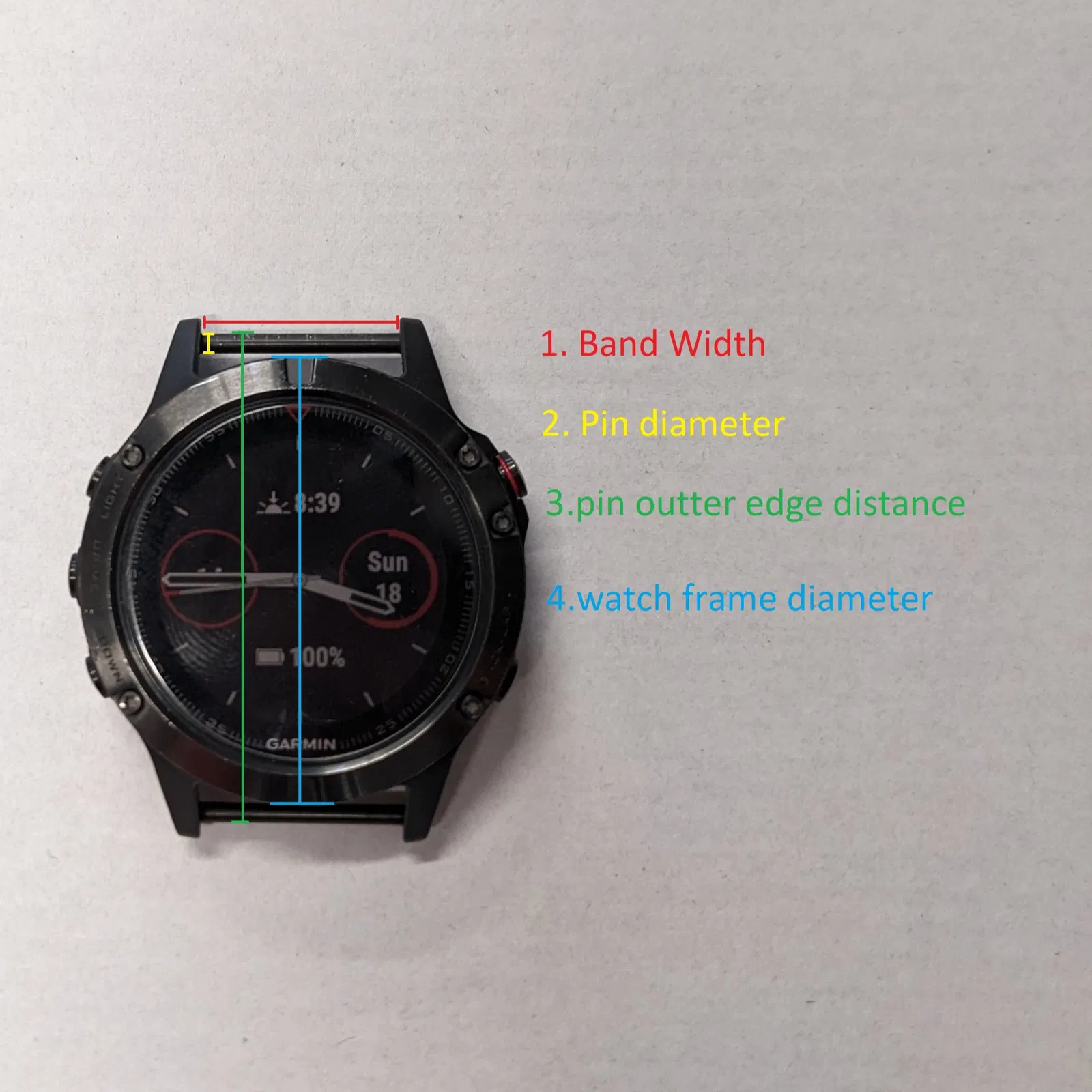 - 4: đường kính khung đồng hồ (watch frame diameter)