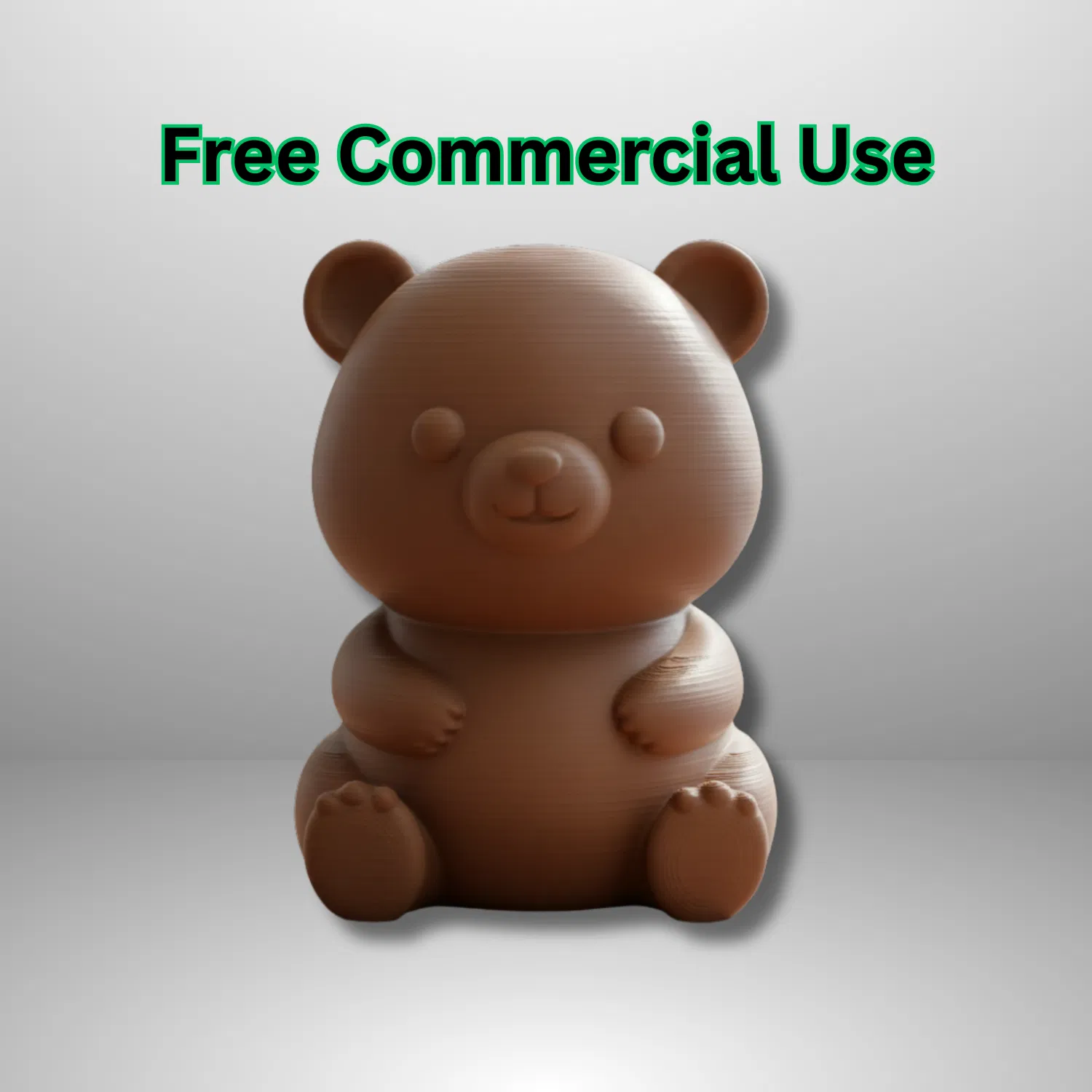 Một bé gấu mũm mĩm đang ngồi, với các đường nét bo tròn mềm mại và vẻ ngoài thân thiện. Mẫu này được thiết kế để trông giống như một bản in filament thật, bao gồm các vết layer lines nhìn thấy được và bề mặt matte.