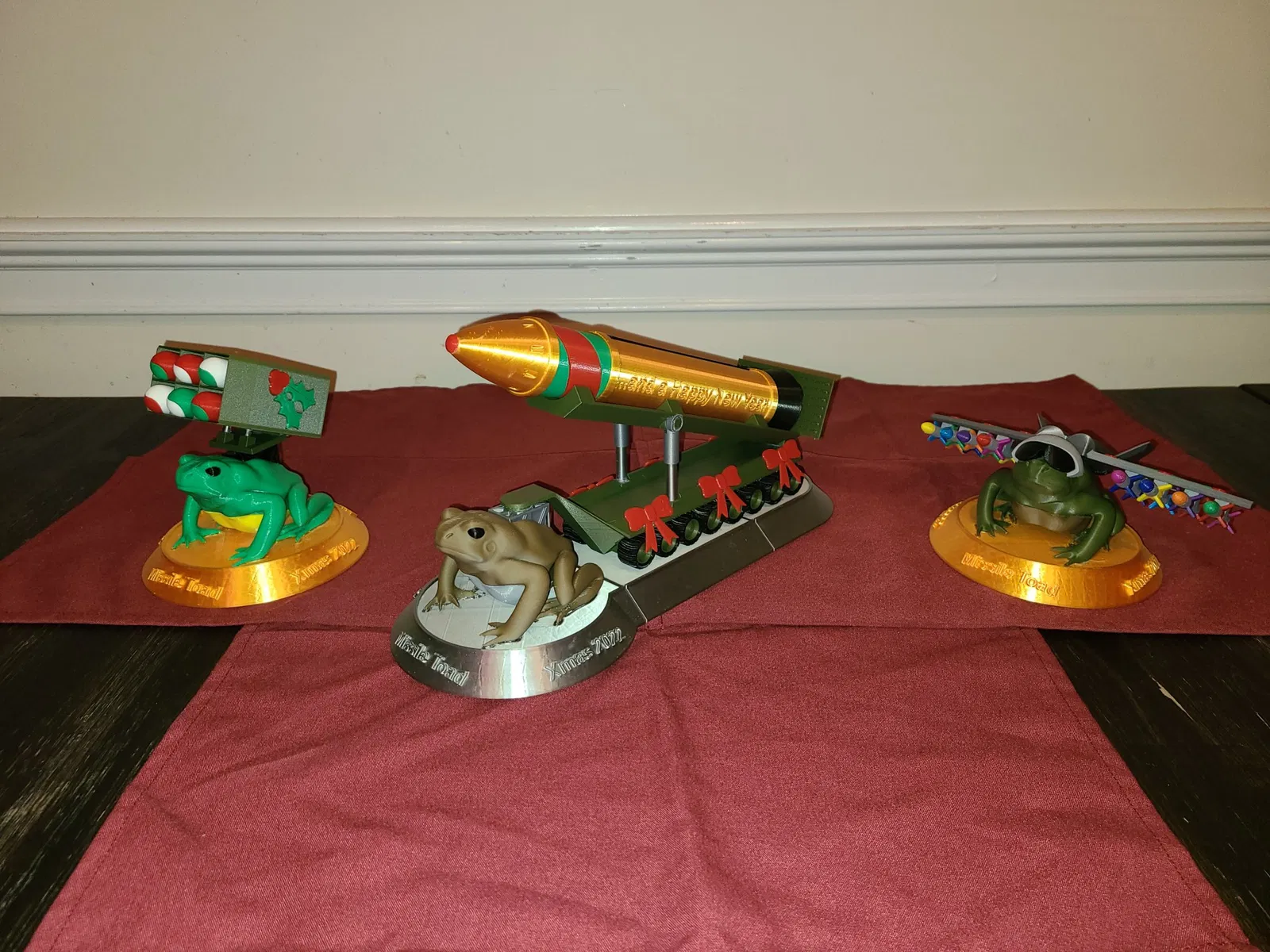 Giới thiệu Bộ đánh chặn Air Missile 2022 (a.k.a cóc có con cóc Giáng sinh) cho mùa lễ. Đạt được ưu thế không khí trong môi trường lễ hội. Đơn vị không khí này tự hào có 8 tên lửa đánh chặn Holly Jolly để chào đón mùa, trước khi nó chào đón bạn.