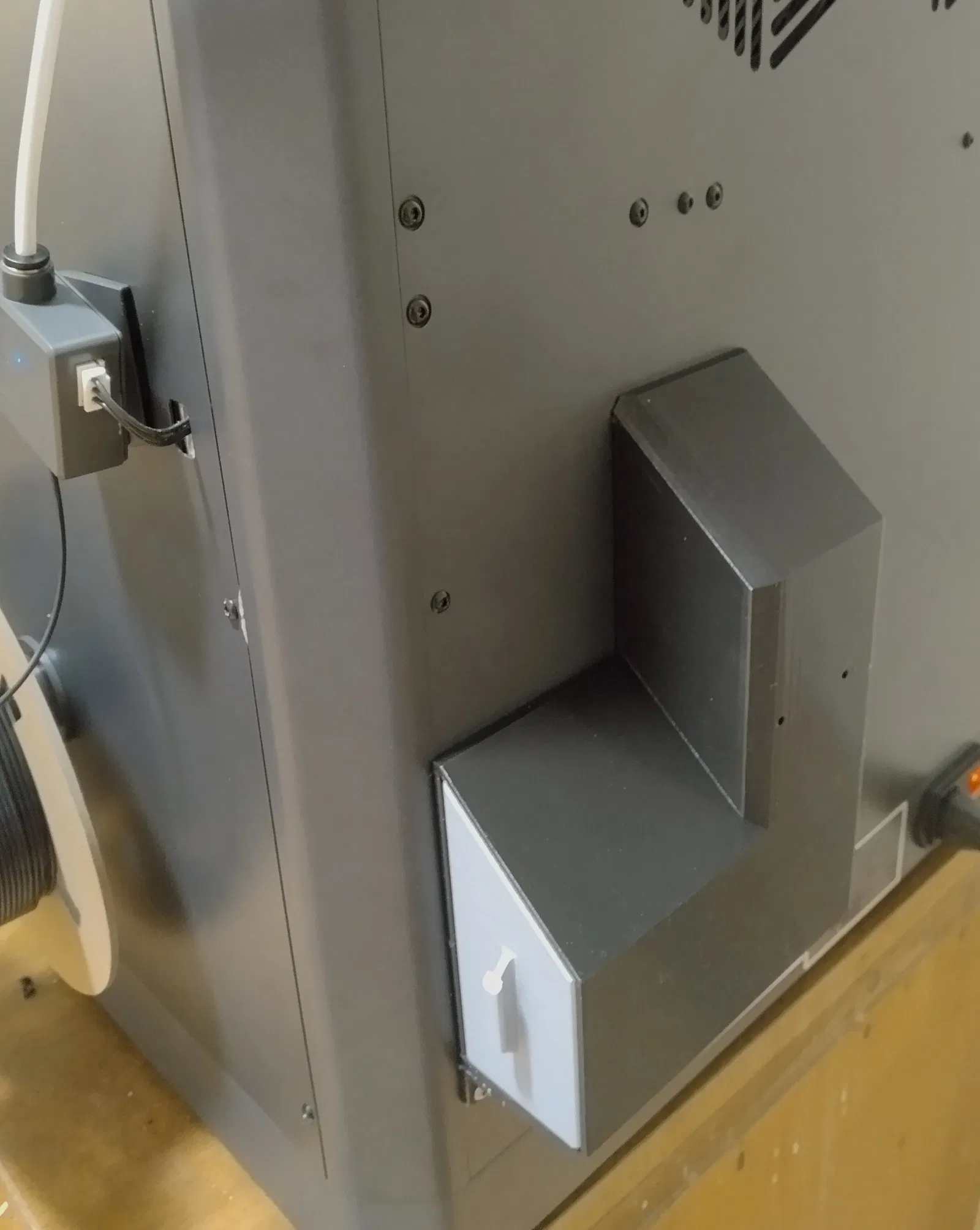Mình thích mẫu purge bin đóng kín hoàn toàn do MikeyLew32 thiết kế, nhưng mình chỉnh lại để in được không cần support và thêm 4 nam châm 3x6 mm (kích thước tiêu chuẩn Voron) để giữ ngăn kéo nằm yên, giảm rung/lạch cạch trong lúc in. Nếu bạn không có nam châm thì vẫn có thể bỏ phần này.
