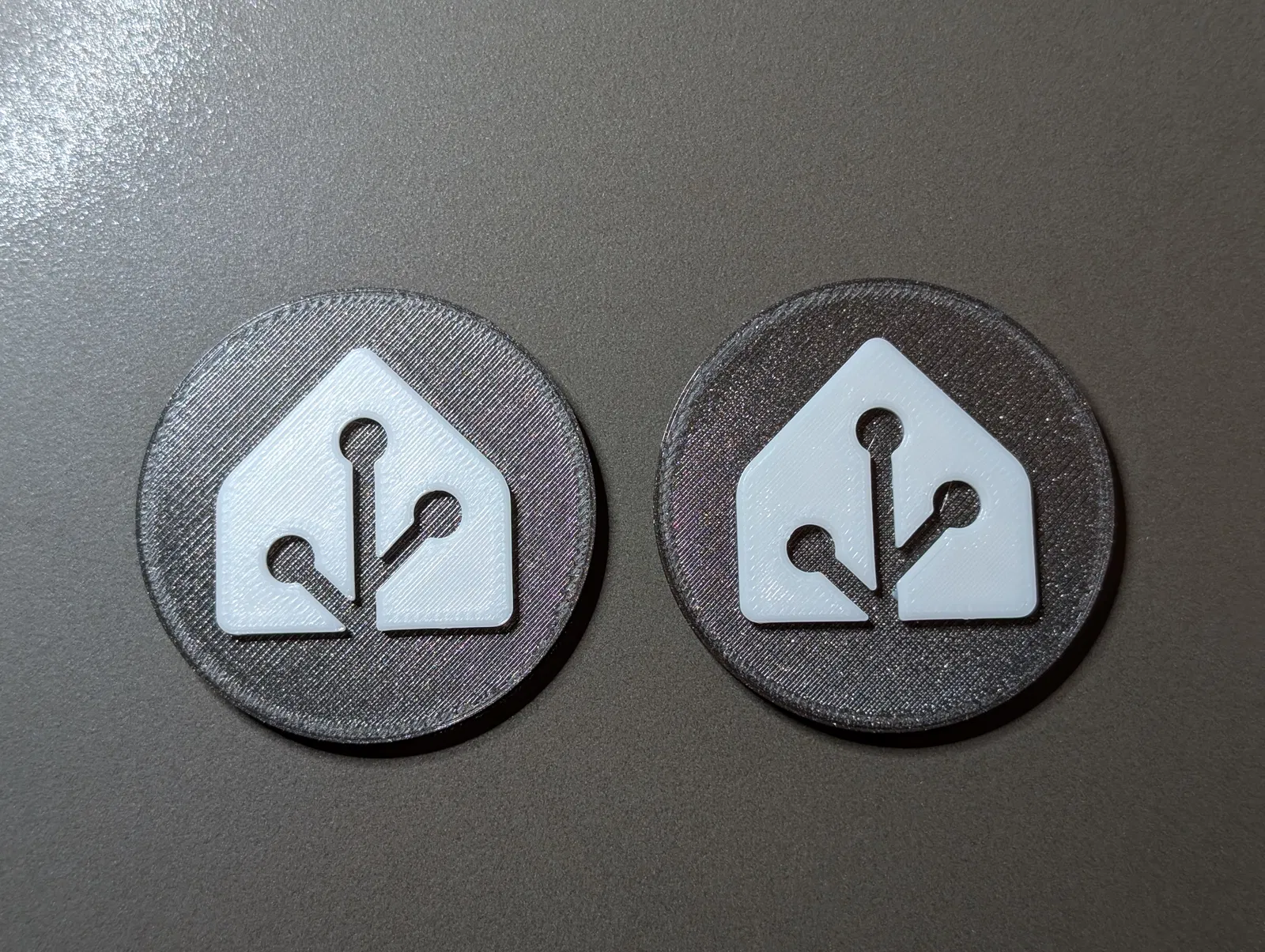 Token NFC có logo Home Assistant (Hass). Bạn có thể in bằng file 3mf có sẵn hoặc thêm điểm dừng để nhét thẻ NFC vào trong, rồi đổi màu phần logo. Đã thử in PETG, không cần supports, 10% gyroid infill.
