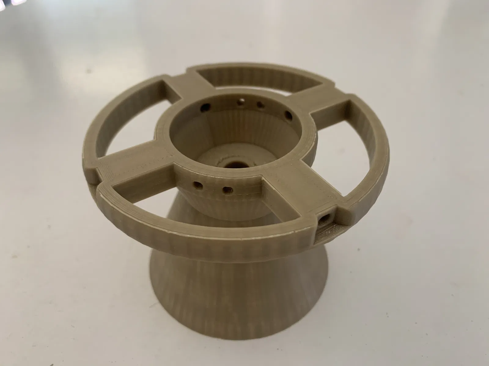 1. In với phần cone hướng lên trên, dùng tree support và thêm brim cả bên trong lẫn bên ngoài.