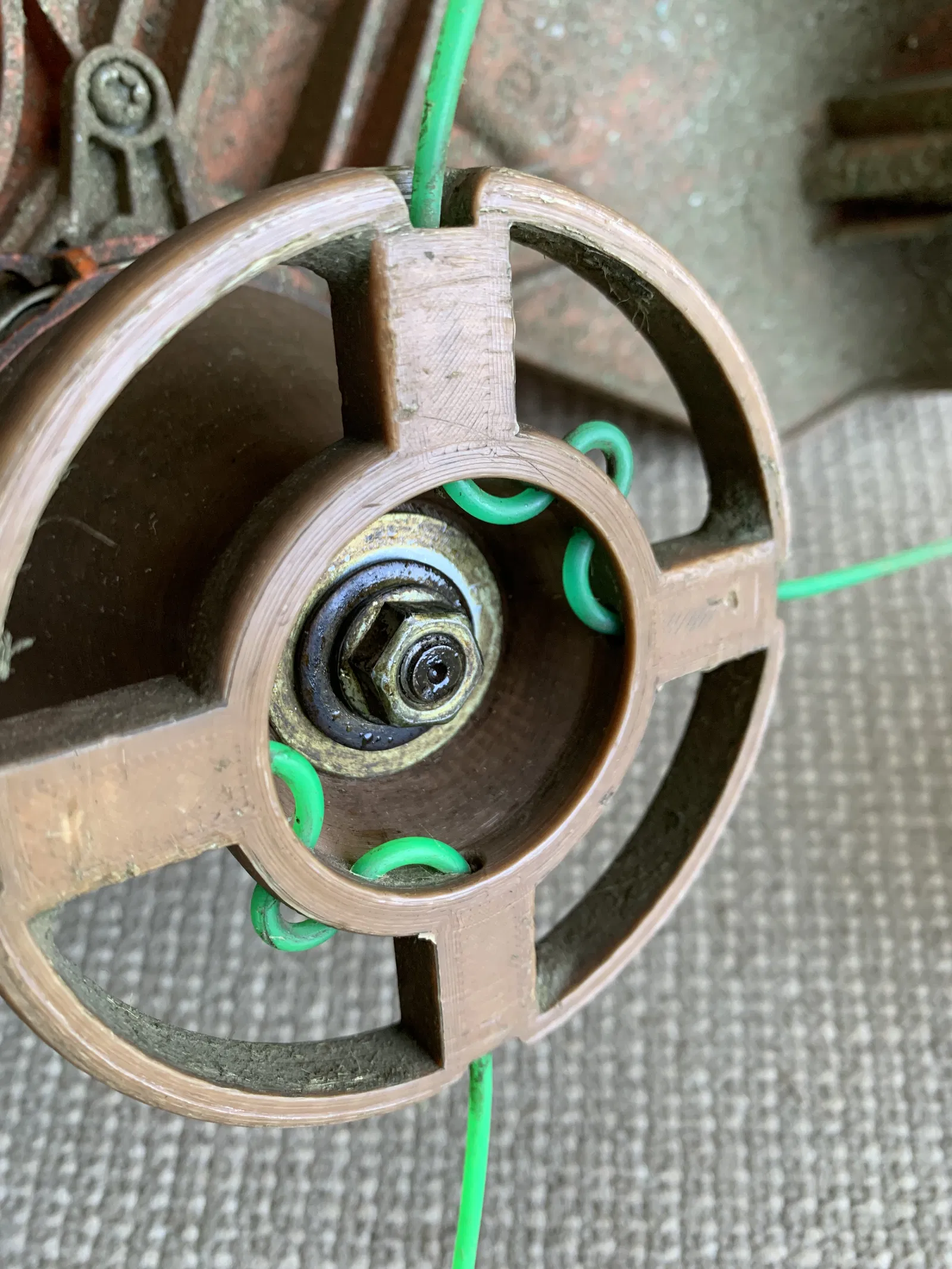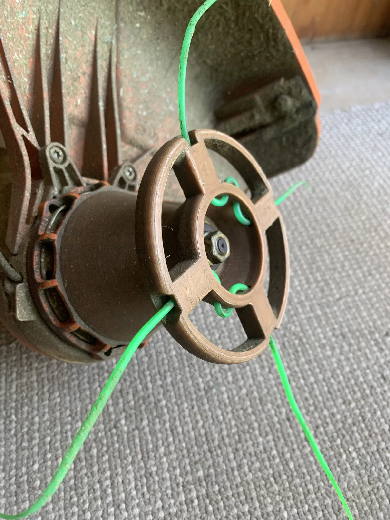 Mẫu đầu cước (Line Trimmer Head) dành cho máy STILH FSA 60 R. Khuyến nghị in ABS, đặt phần cone hướng lên với tree support và brim trong/ngoài. Lắp bằng bu lông + washer, siết chặt; dùng dây cước dày ~2.5mm.