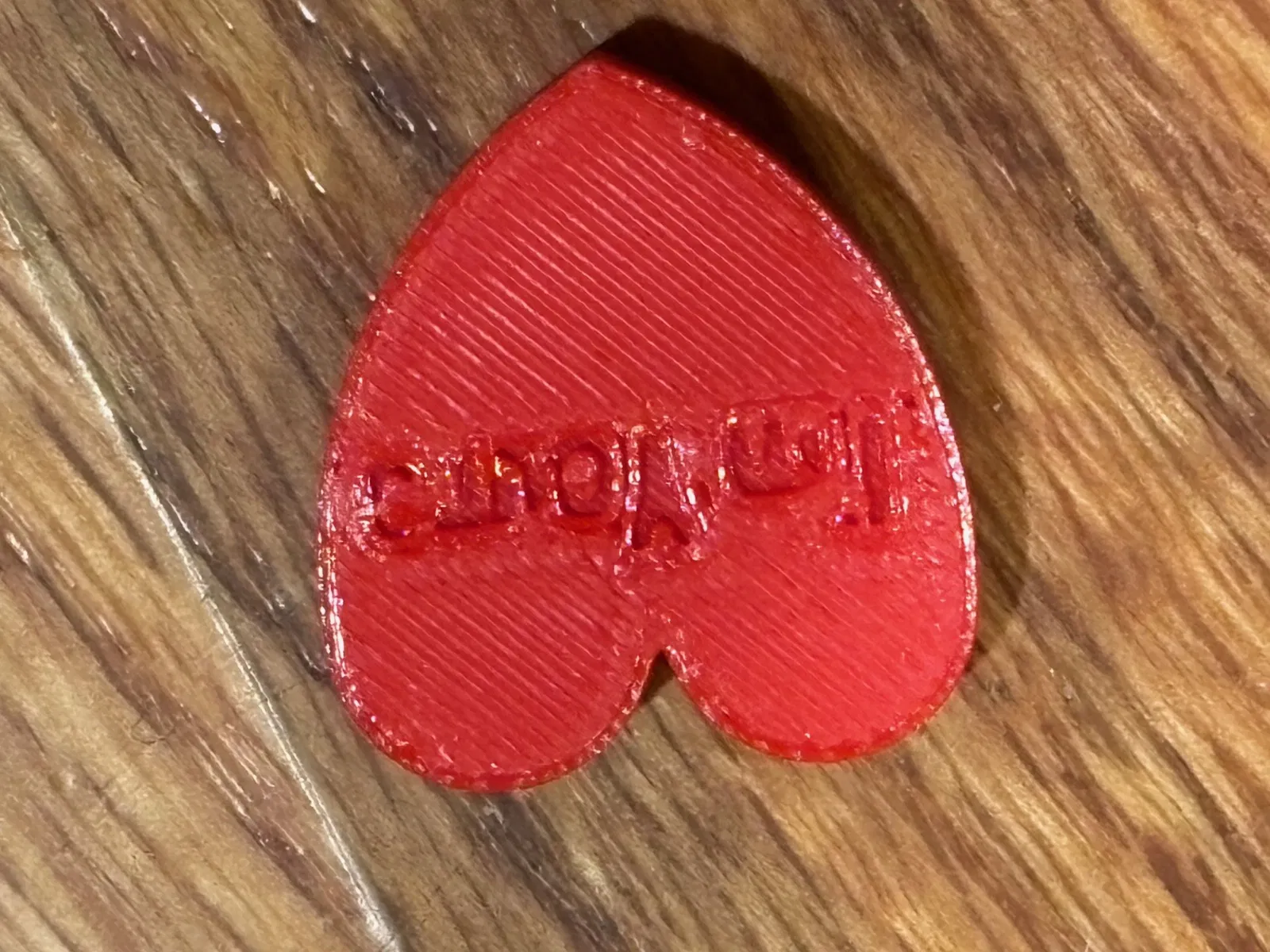 Một mẫu in Valentine dạng “Candy” Hearts giống kẹo trái tim kèm lời nhắn—nhưng chỉ để trưng chứ không ăn được. In 0.15 mm layer height, không cần supports. Có sẵn 2 kích thước, có thể scale trong PrusaSlicer.