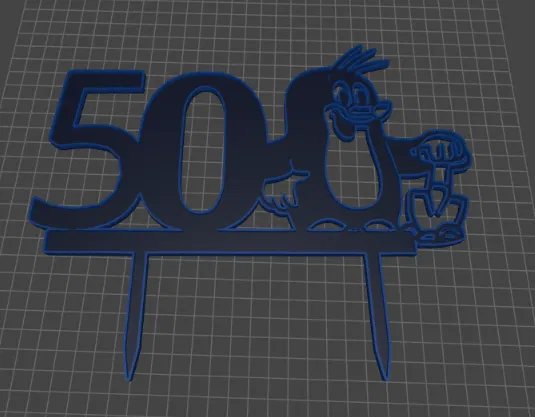 Cake topper sinh nhật 50 tuổi với nhân vật chuột chũi tươi vui, tối ưu cho 3D printing. Có chân cắm chắc chắn, in một màu vẫn nổi bật; có thể sơn hoặc in nhiều màu để thêm chi tiết.