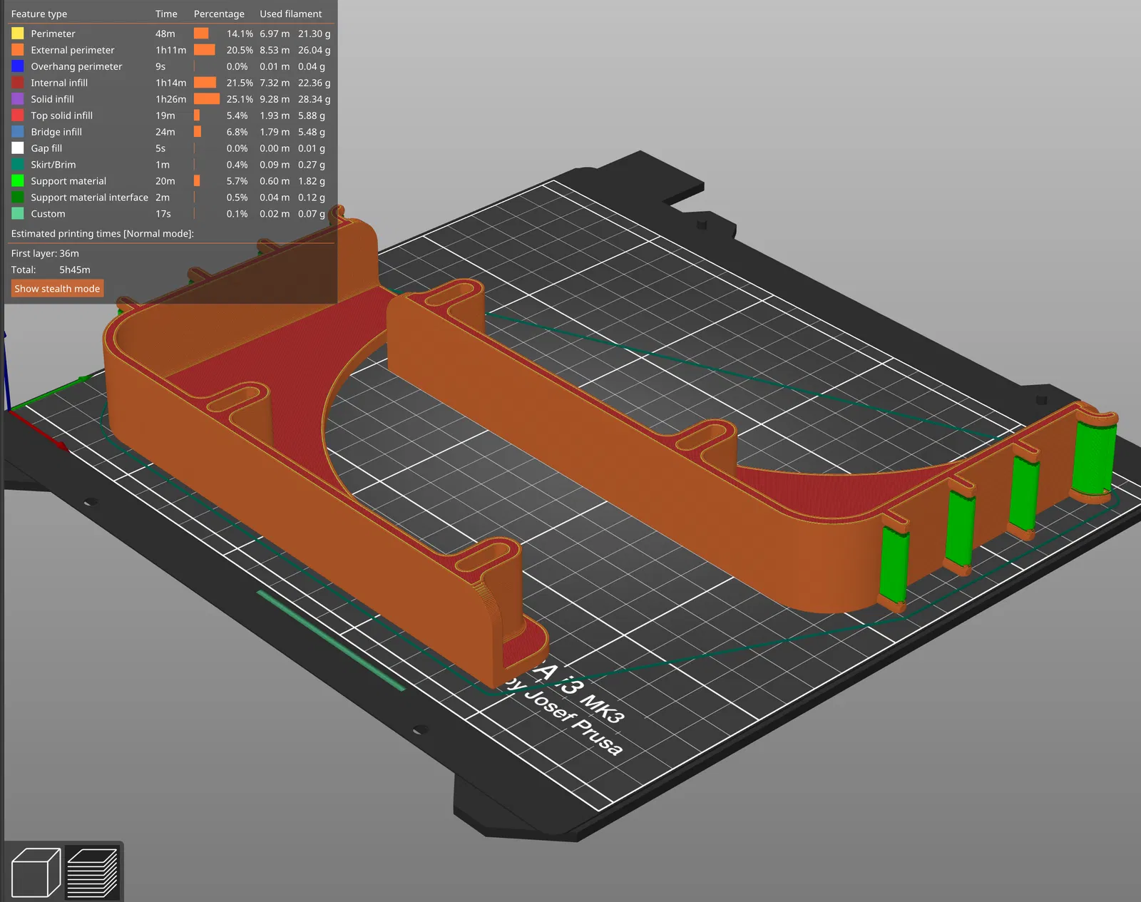 Cần supports cho các chốt (pegs) phía trên; mình khuyên dùng supports kiểu snug mới trong PrusaSlicer 2.4.
