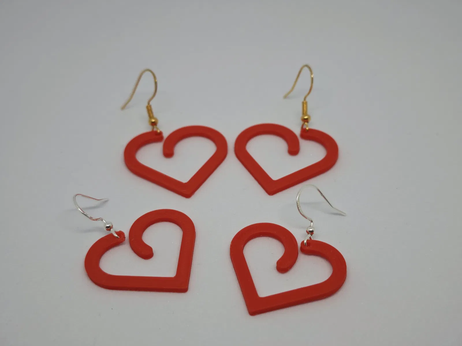 Mẫu bông tai hình trái tim siêu dễ thương, nhẹ và thoải mái khi đeo. Thiết kế đơn giản, in nhanh, hợp để in số lượng nhỏ hoặc làm quà tặng Valentine phút chót, cũng rất xinh để đeo đúng dịp.