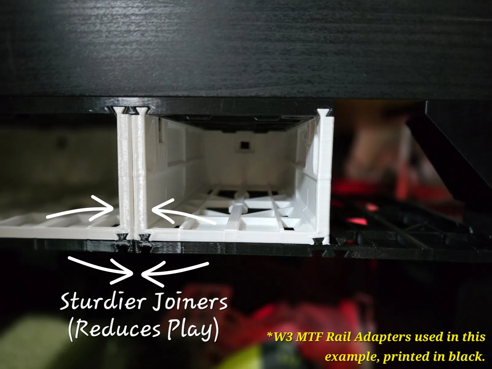 Bộ Male-to-Female rail joiners/connectors cho [Gen2 Drawer], giúp dùng bin kiểu overhang mà không cần thêm rail. Đồng thời khóa các bin hiện có lại với nhau, giảm độ rơ/xệ và tạo lớp đệm khi lắp.