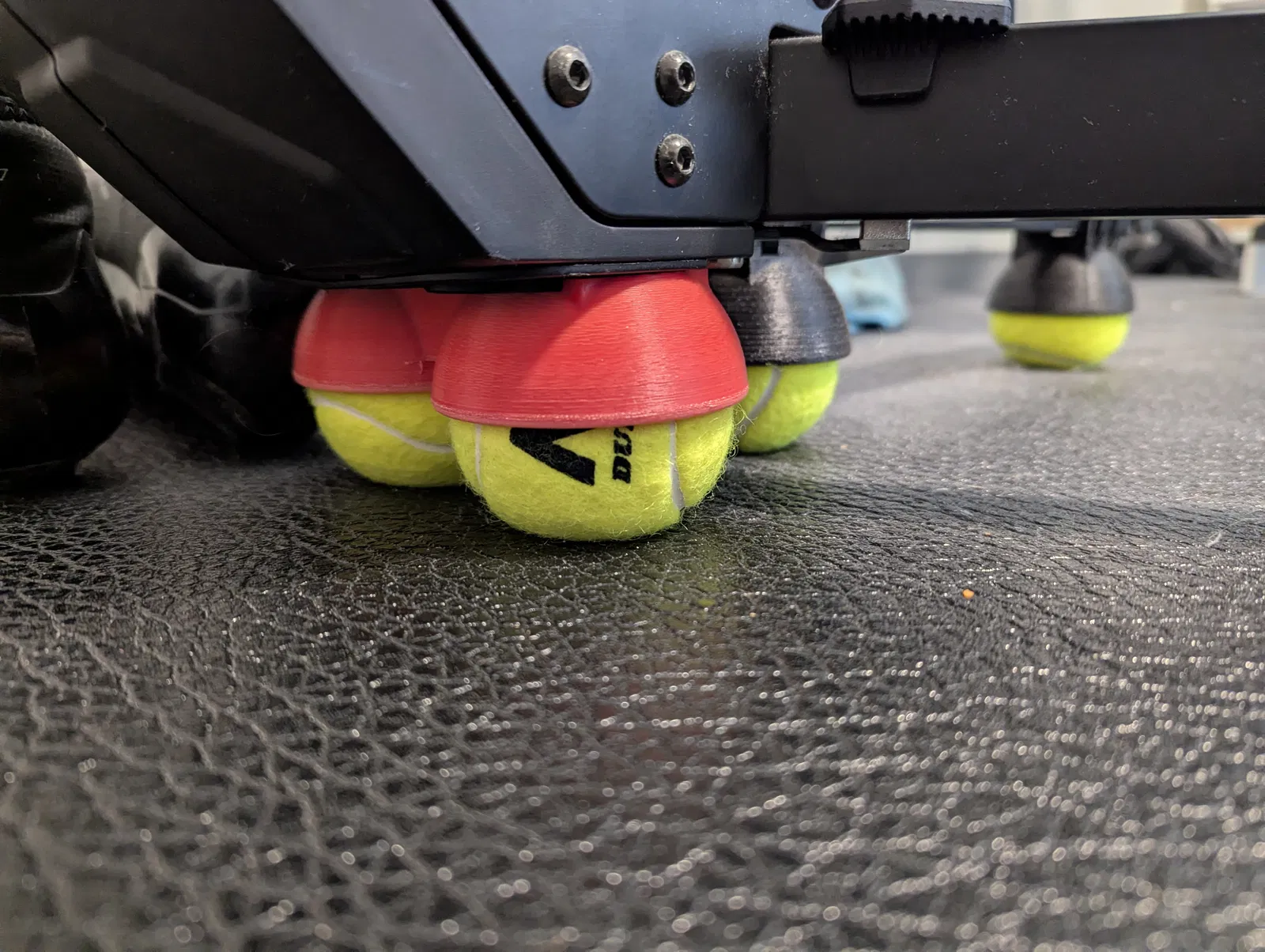 Thiết kế lại Tennis Ball Feet cho Elite Suito để gắn vào hai lỗ gần chân cao su phía sau. In PETG (7 walls, 0.5mm line width, 50% infill), tháo 3 miếng cao su zin trước khi lắp; dùng tự chịu rủi ro.